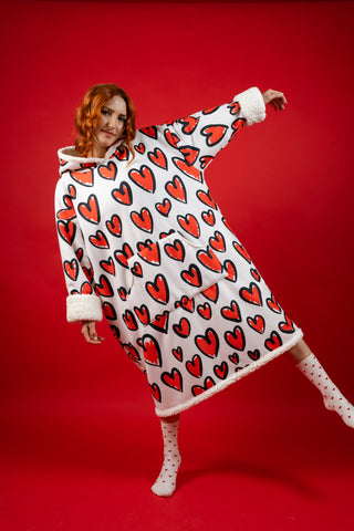 Ponji Kapüşonlu Battaniye - Karalama Kalpler