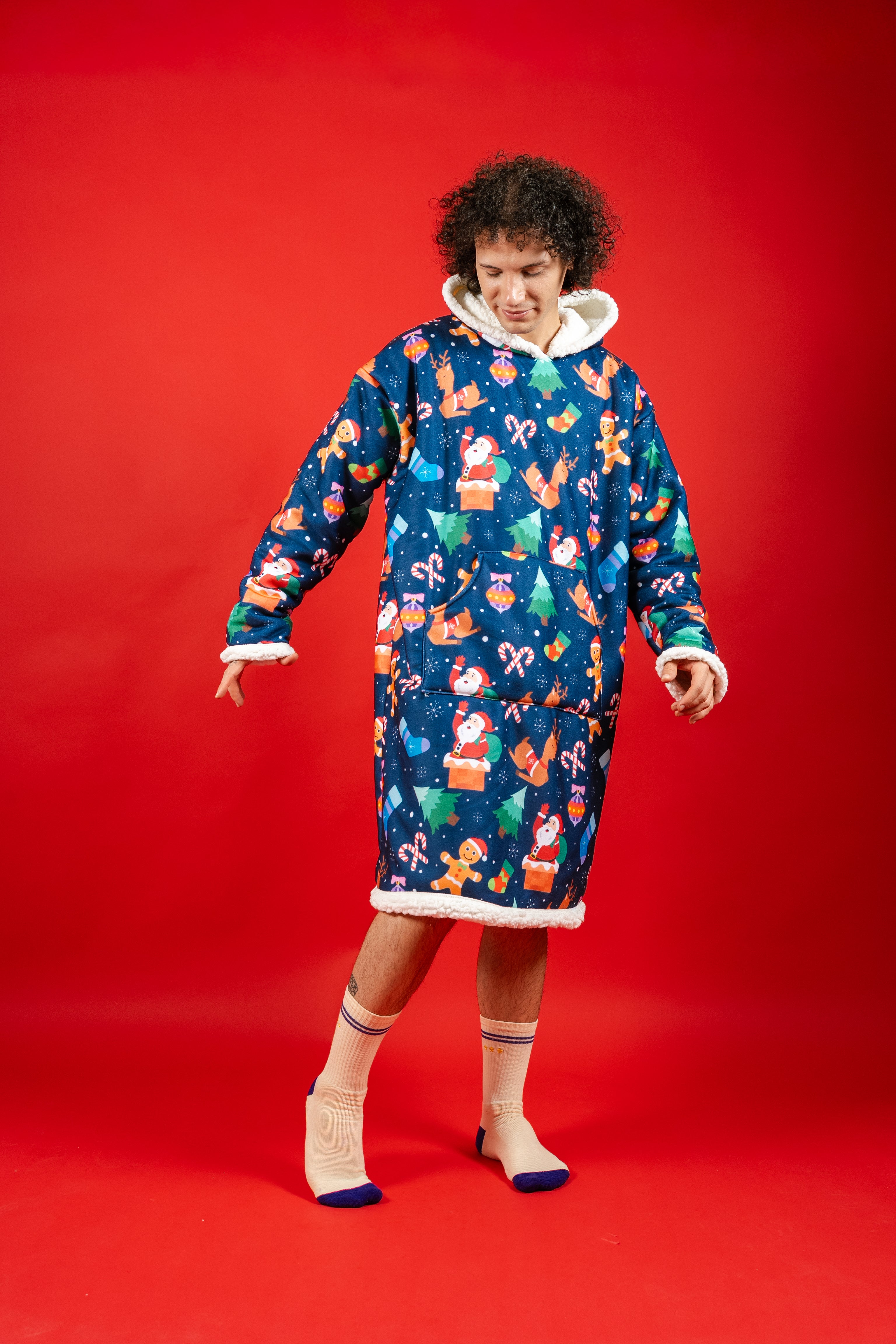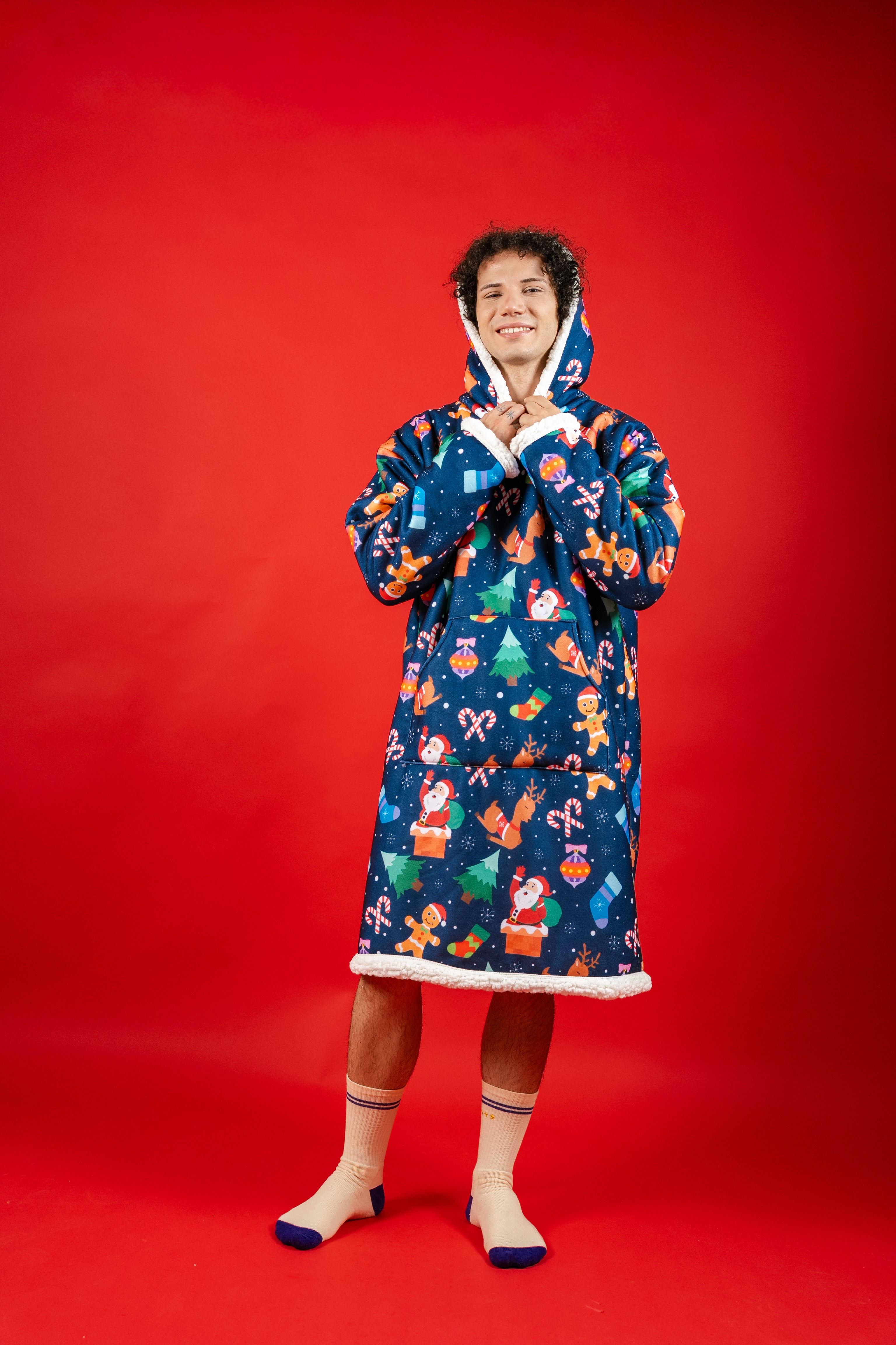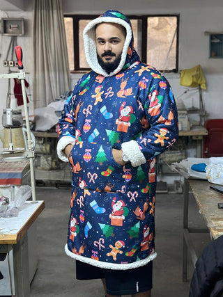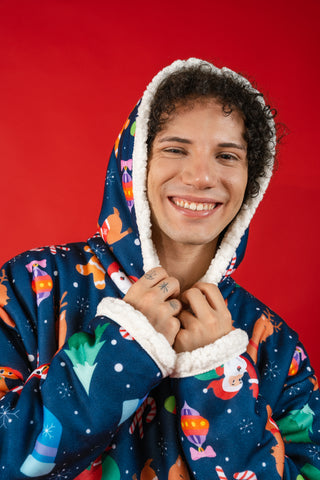 Ponji Kapüşonlu Battaniye - Yılbaşı Mavi Santa