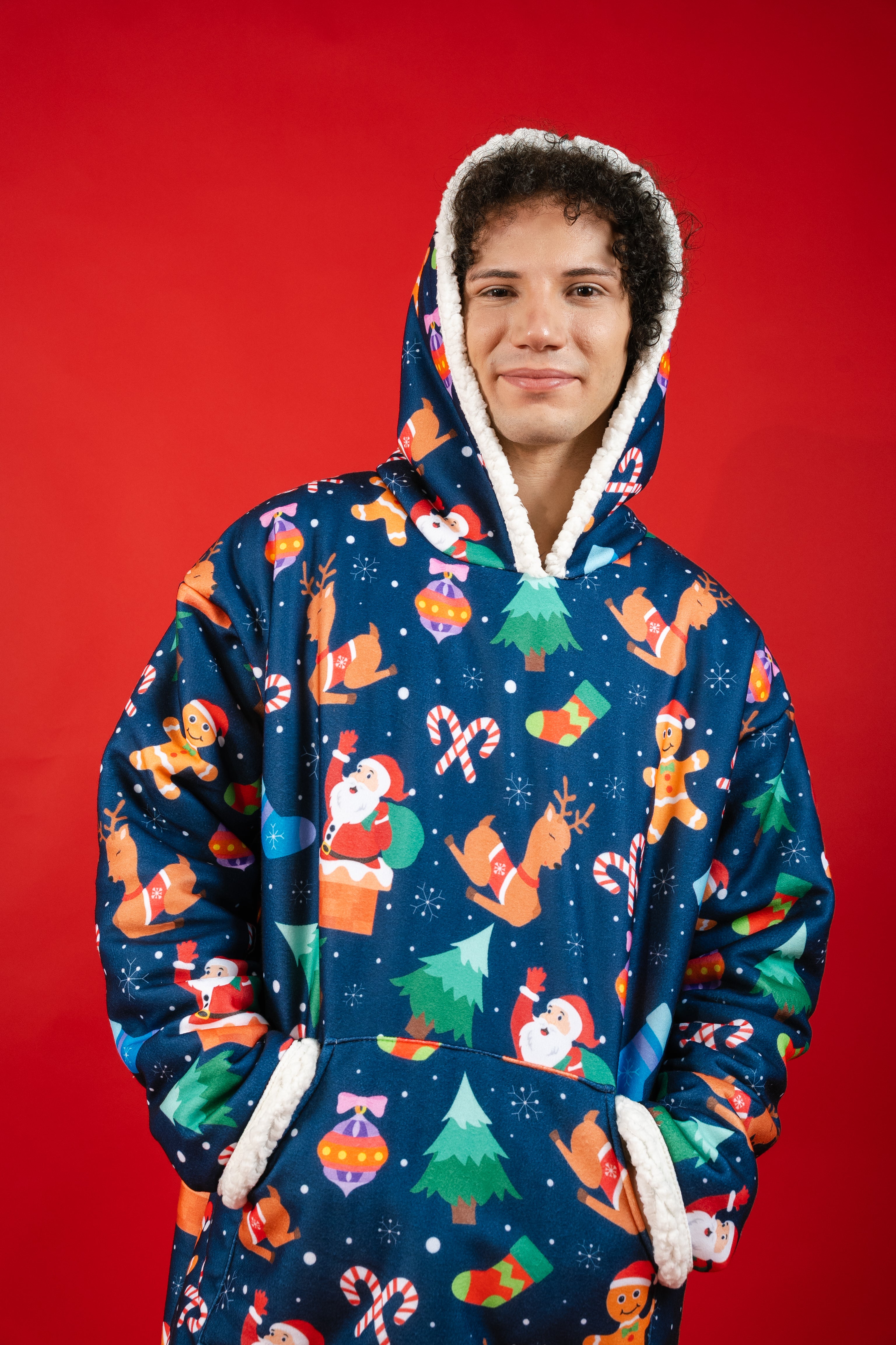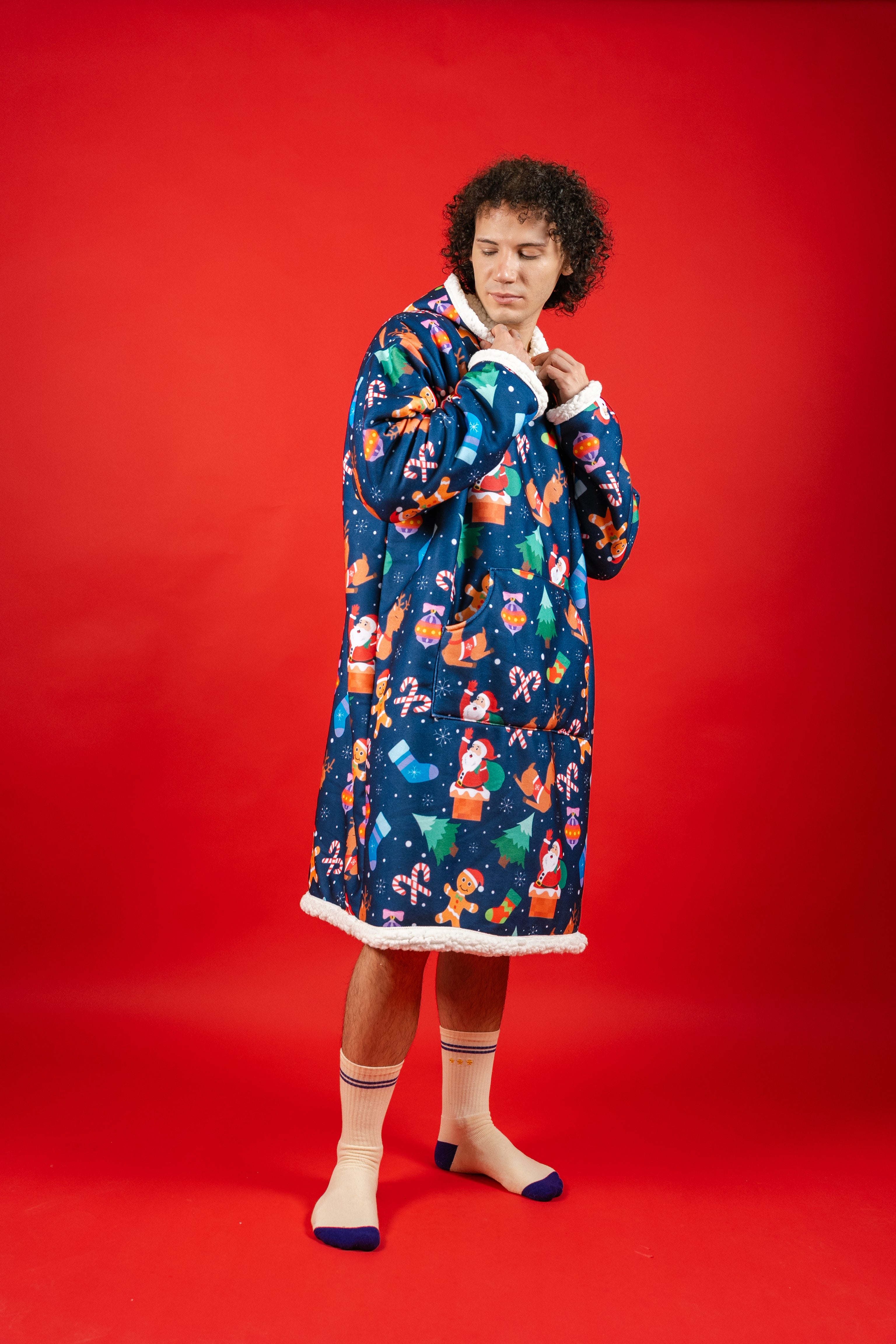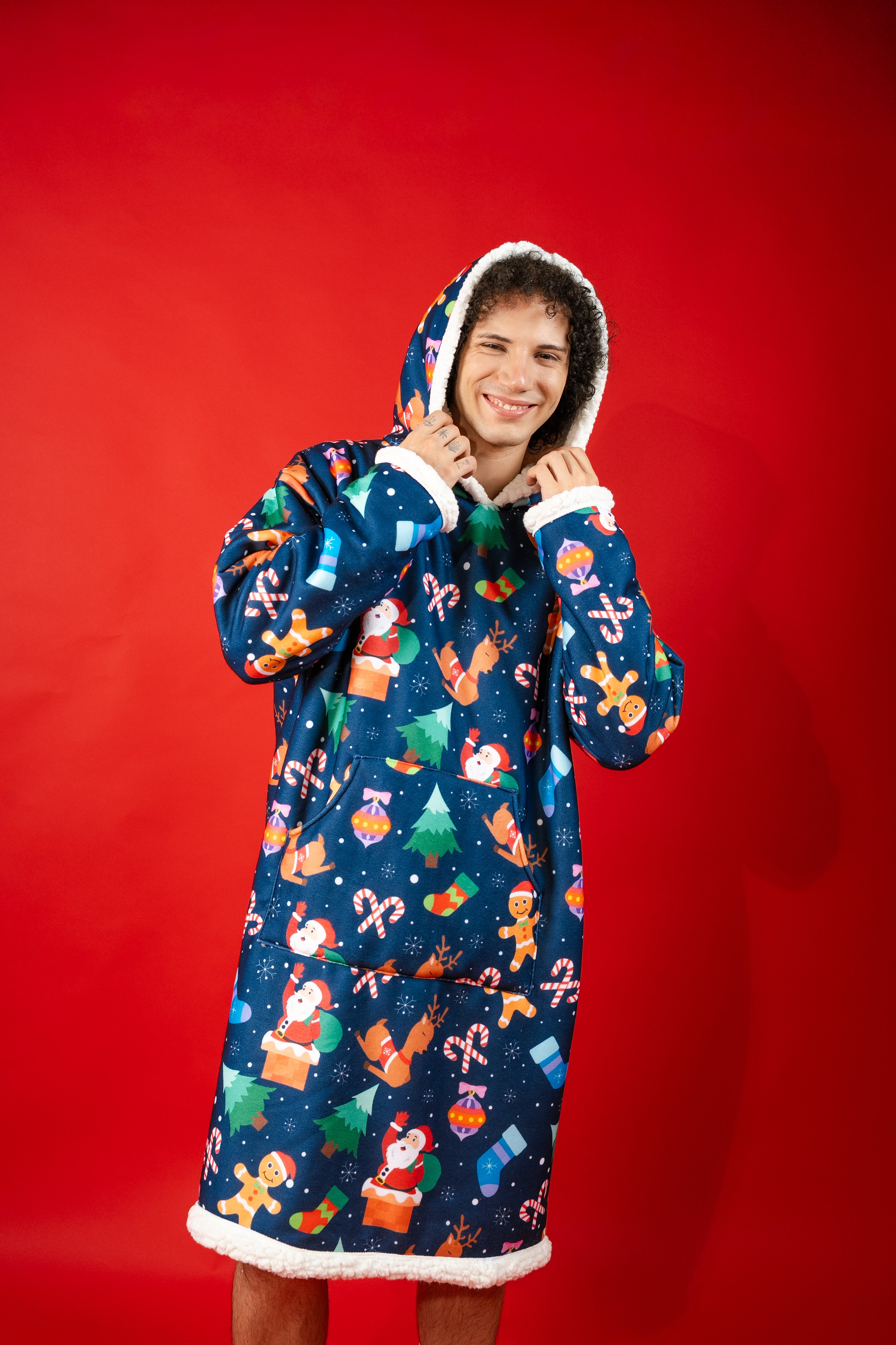 Ponji Kapüşonlu Battaniye - Yılbaşı Mavi Santa