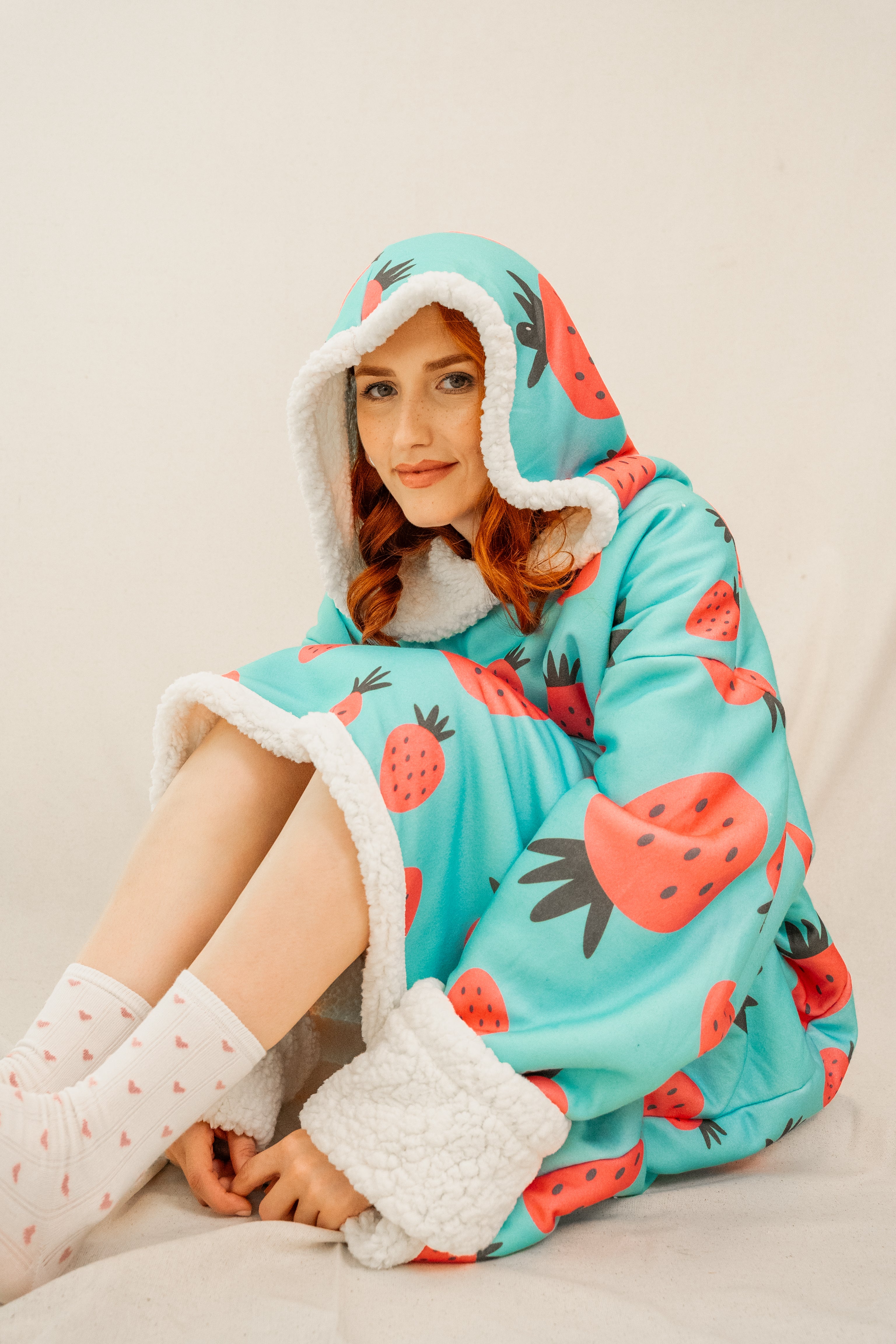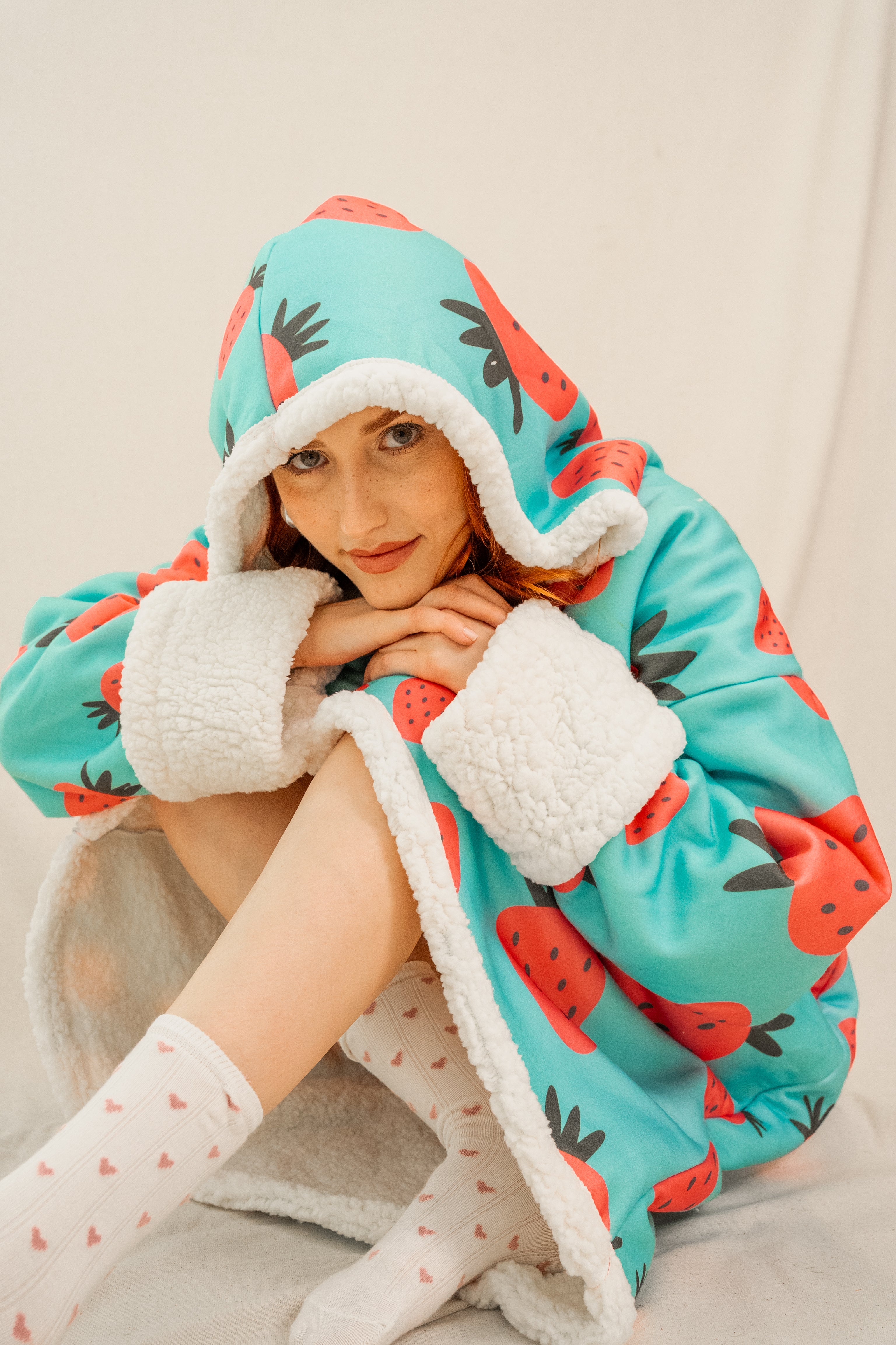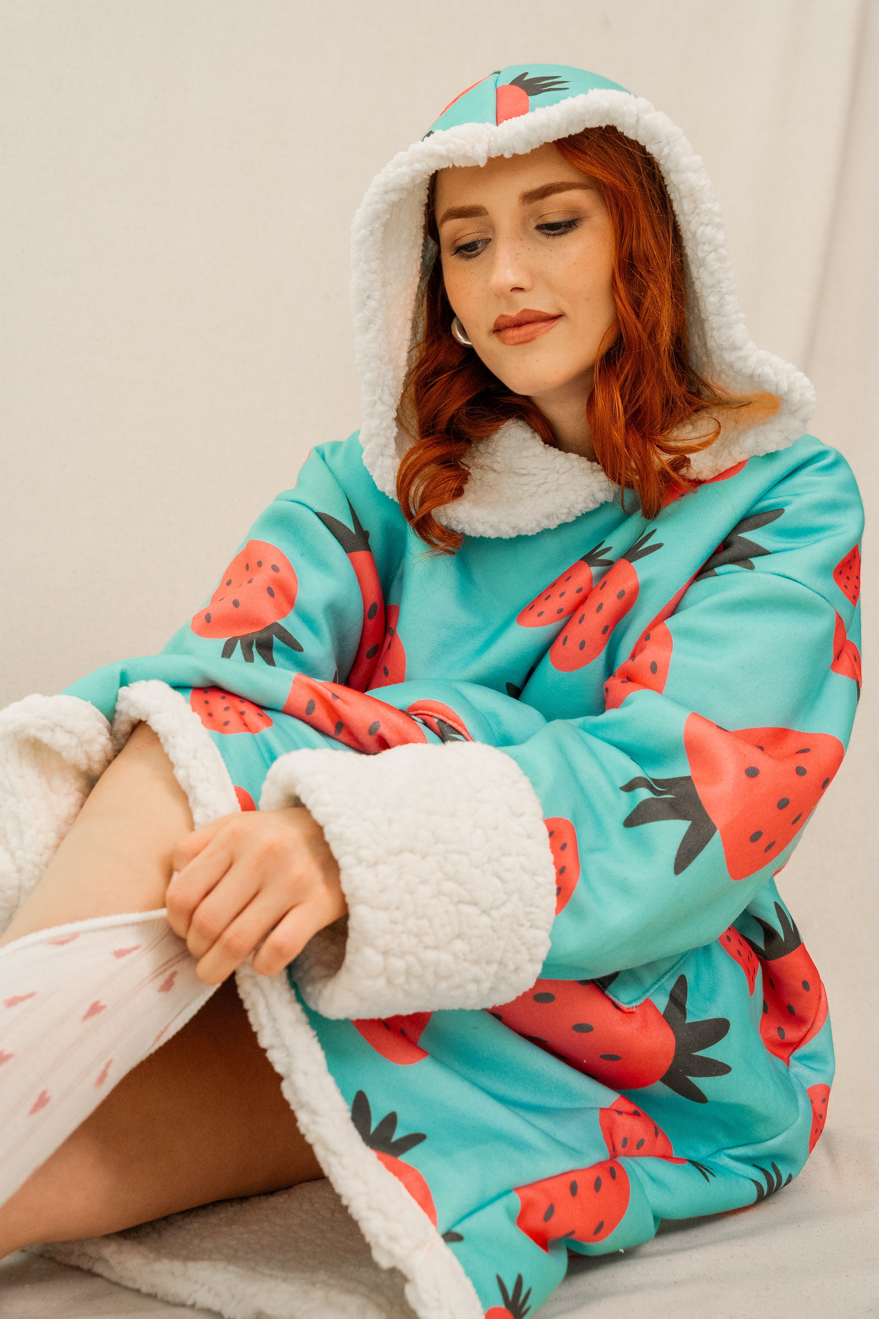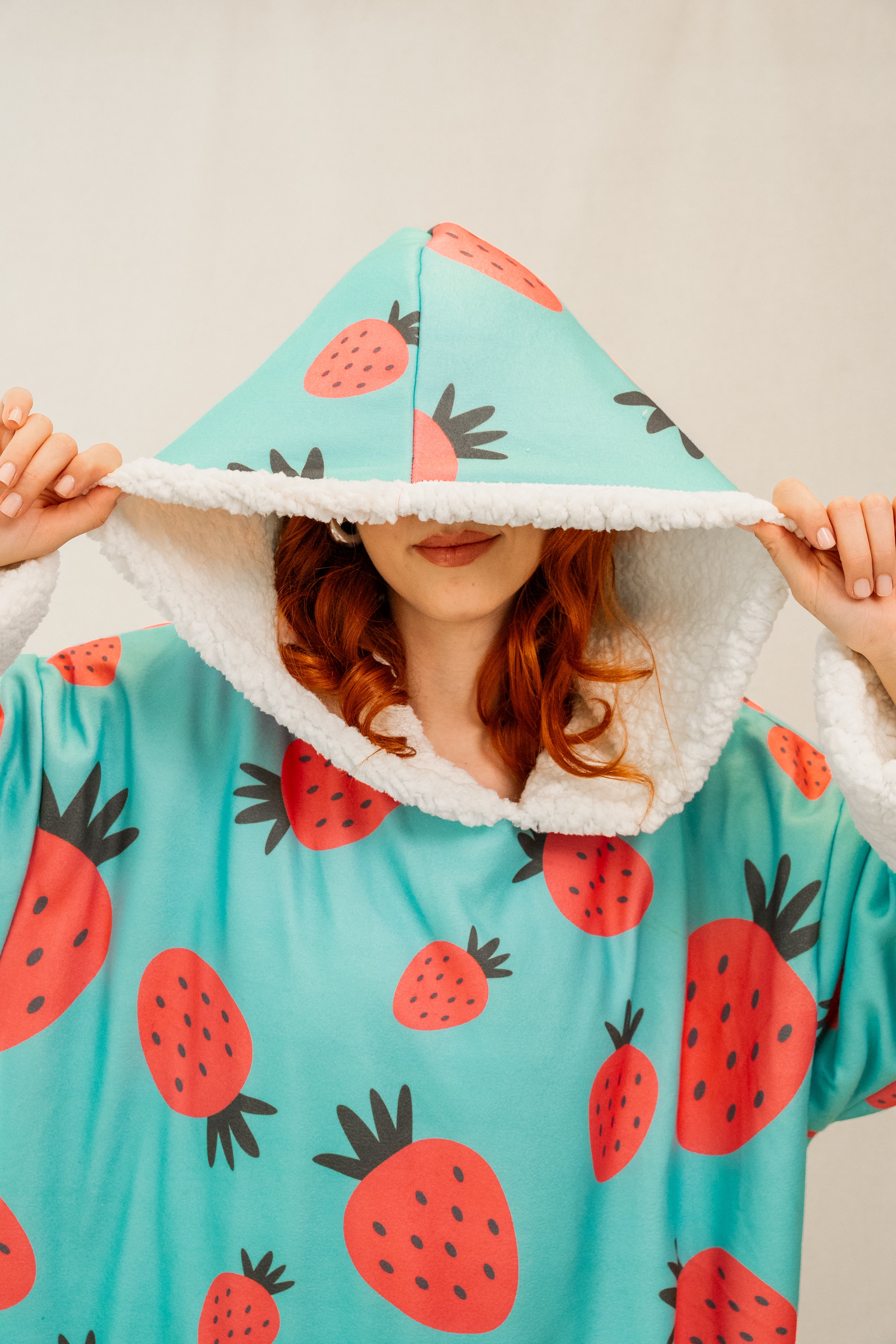 Ponji Kapüşonlu Battaniye - Çilek Reçeli