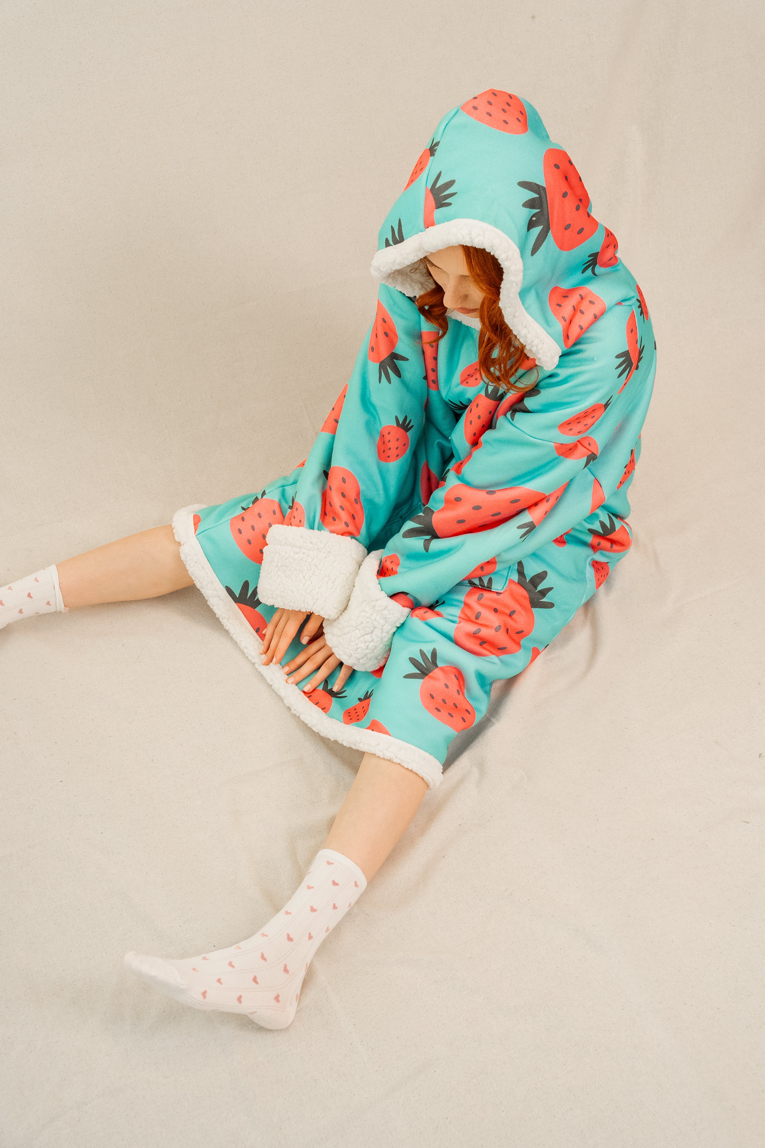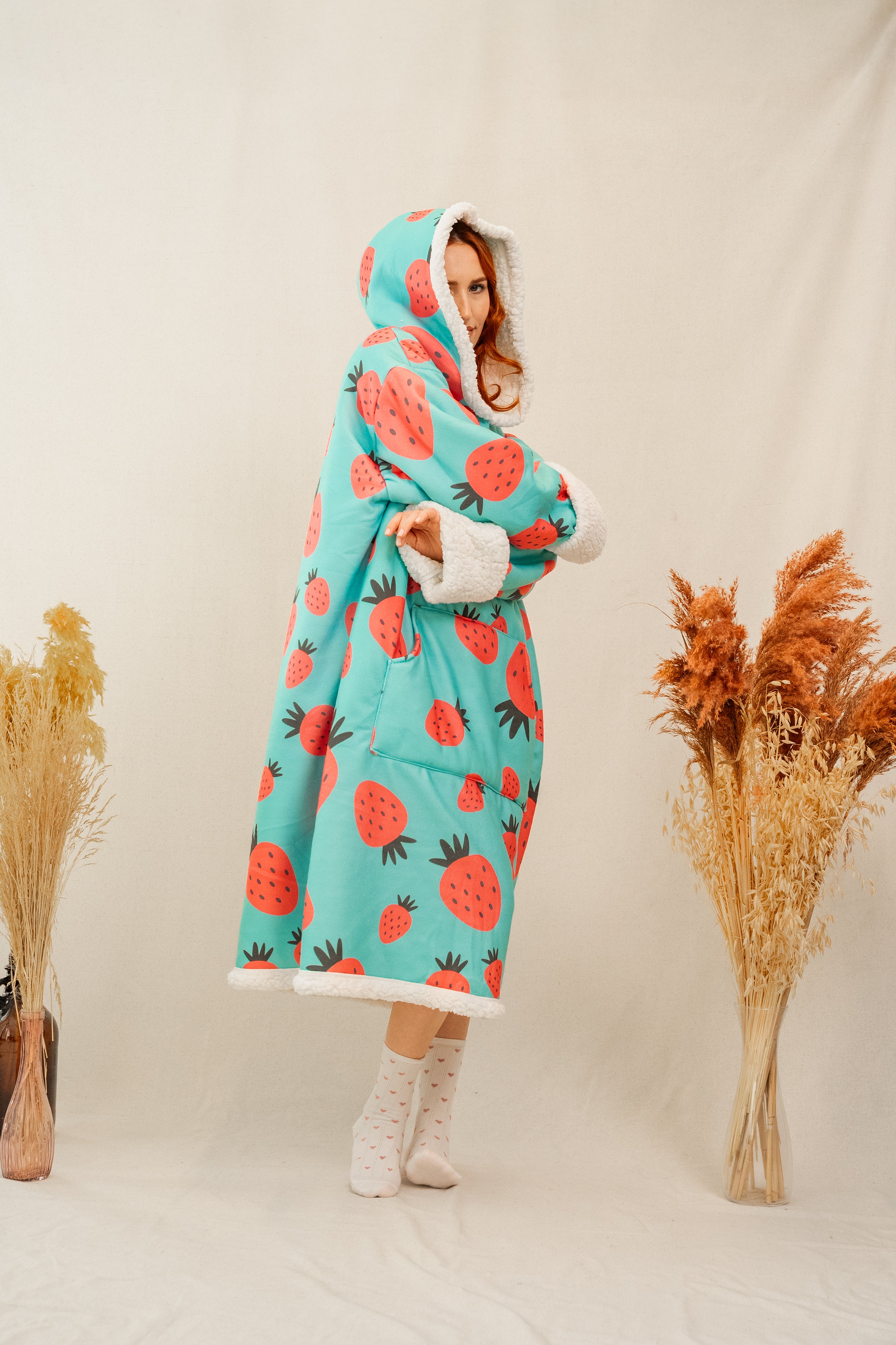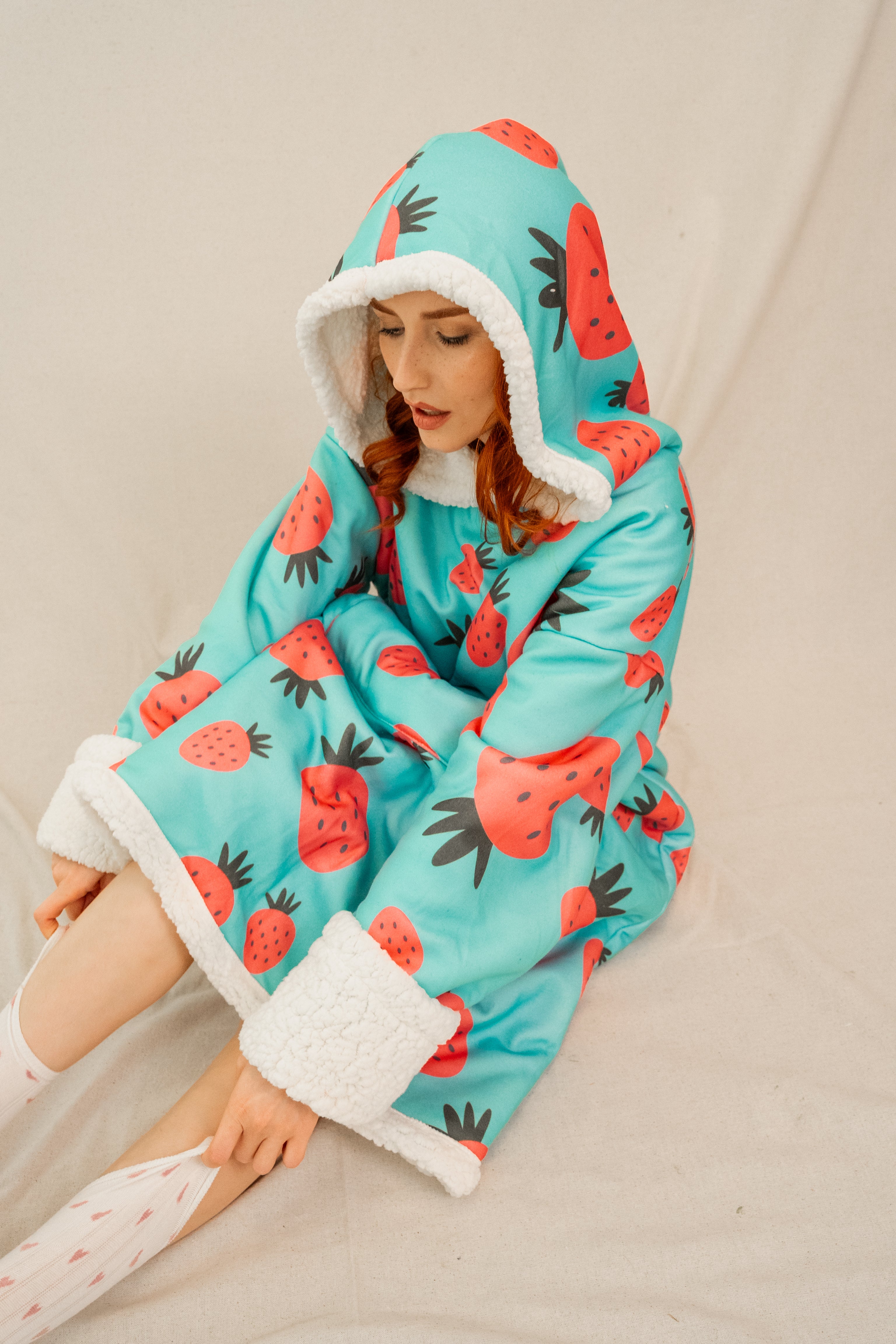 Ponji Kapüşonlu Battaniye - Çilek Reçeli