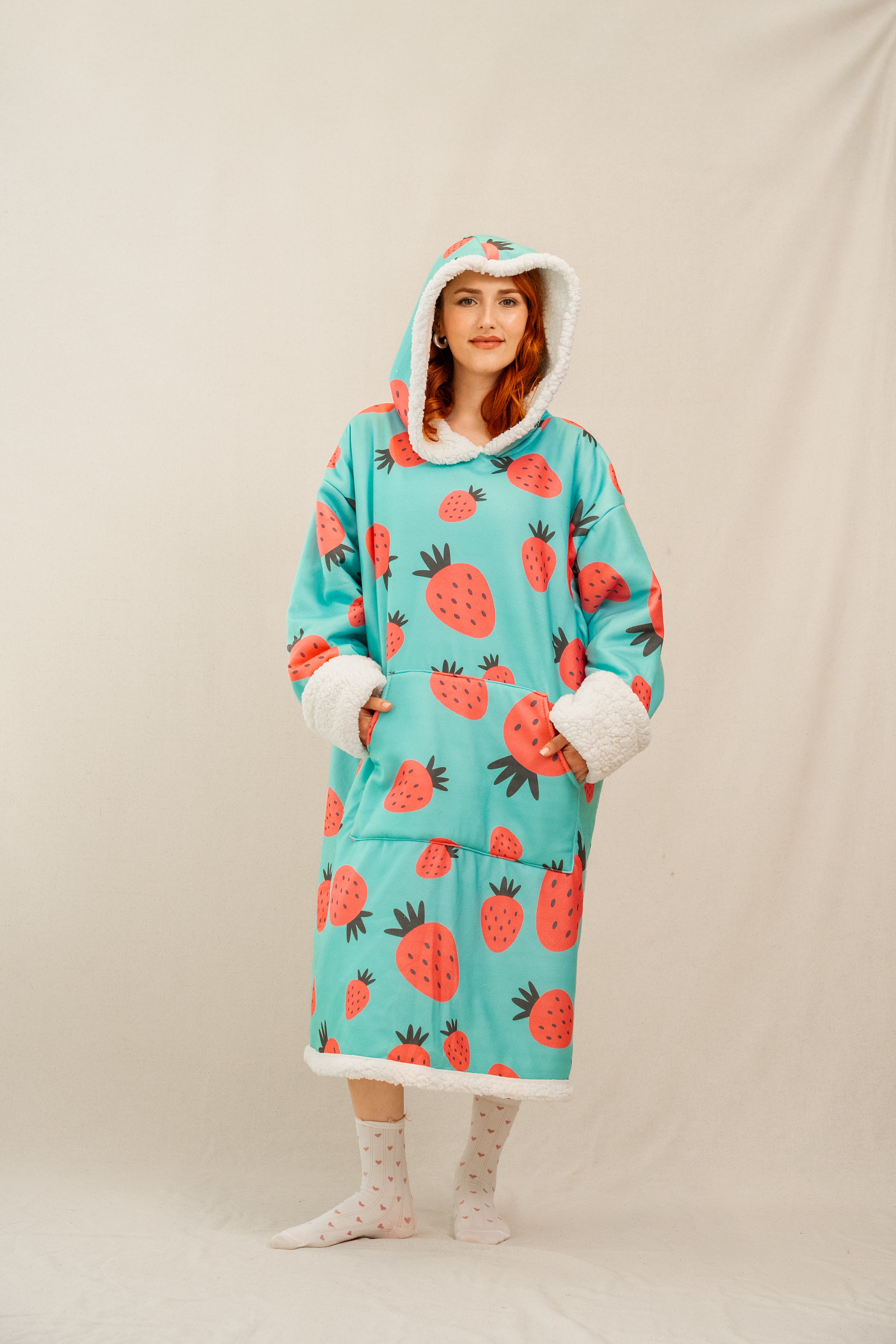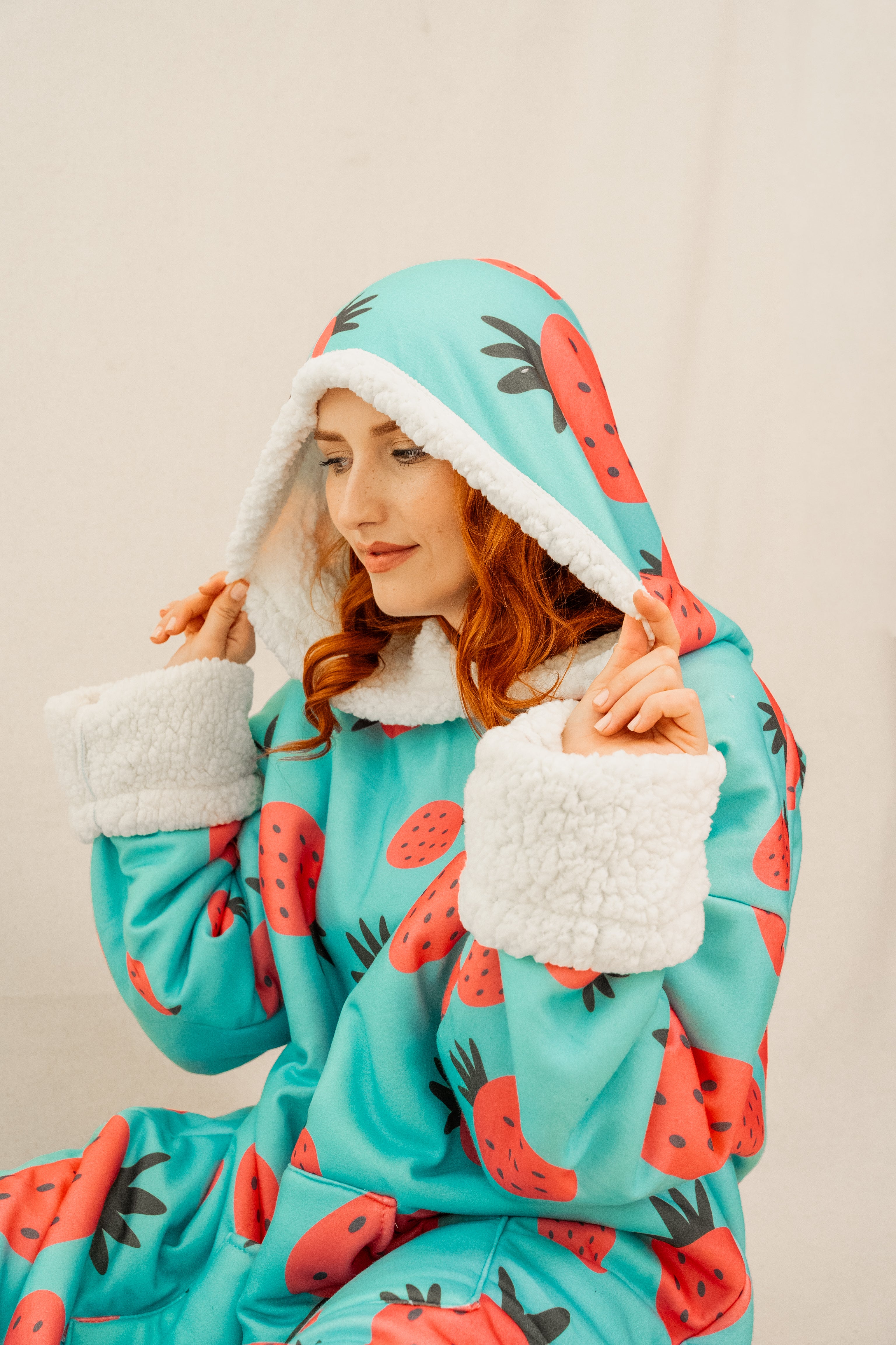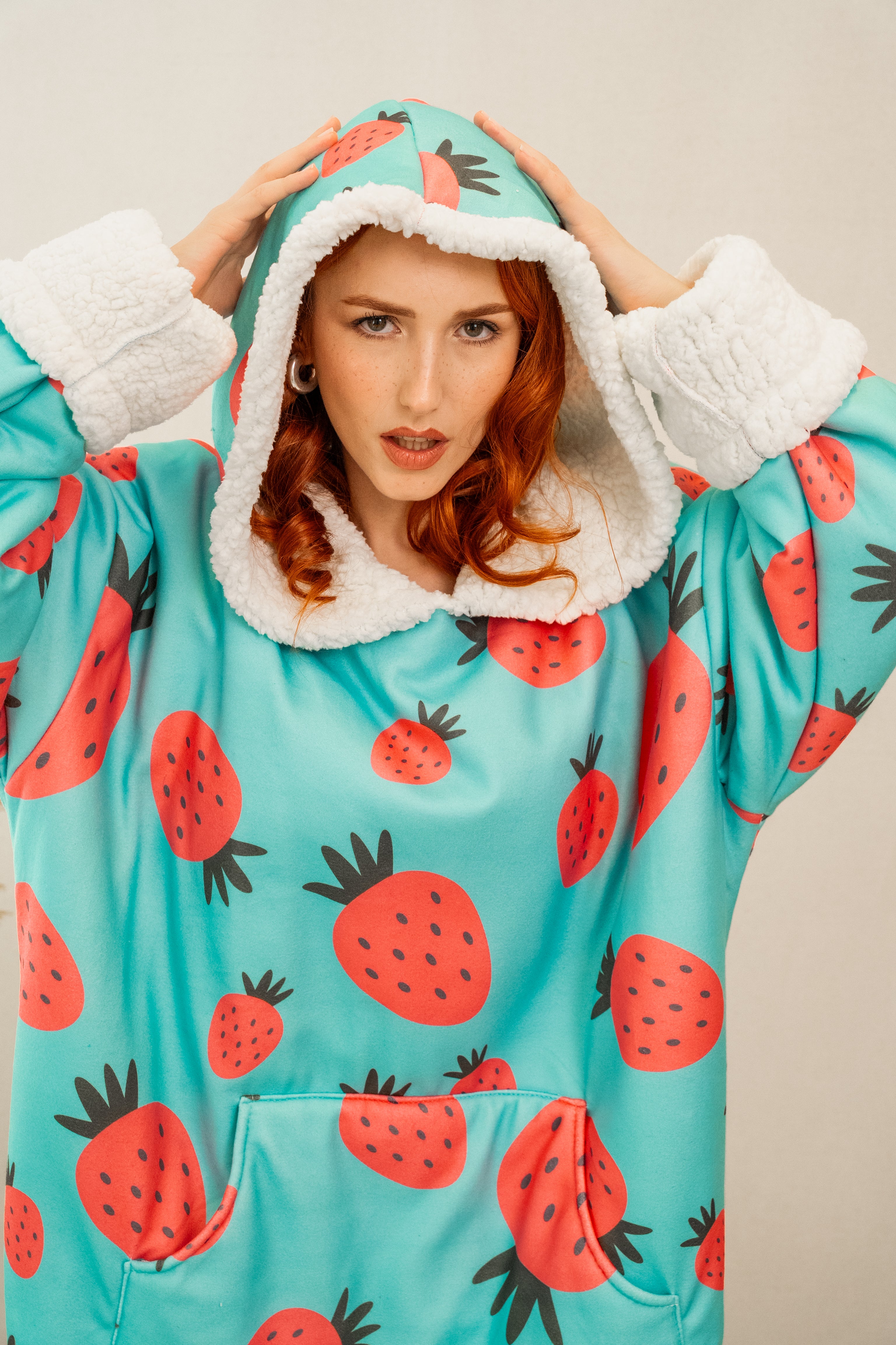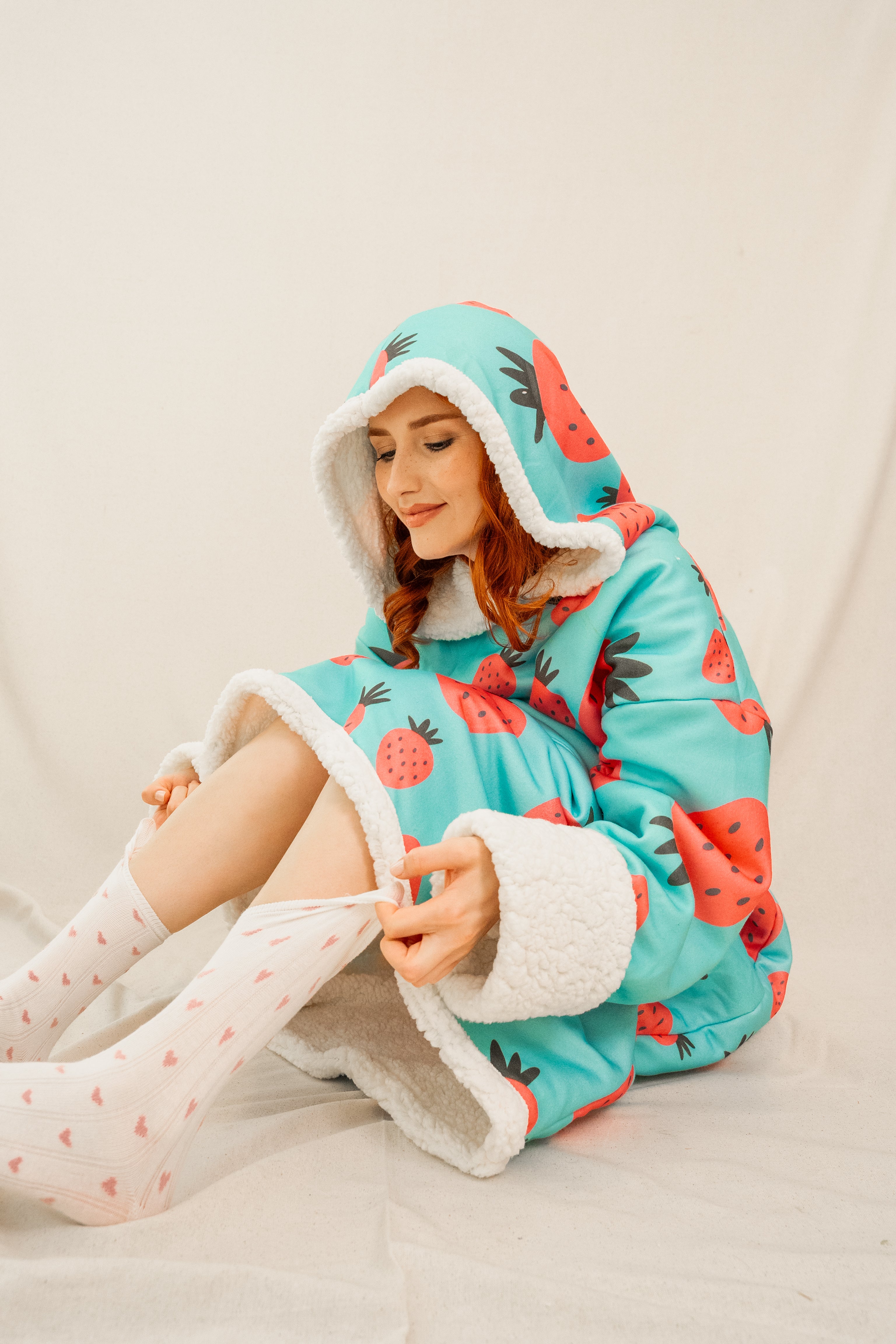 Ponji Kapüşonlu Battaniye - Çilek Reçeli
