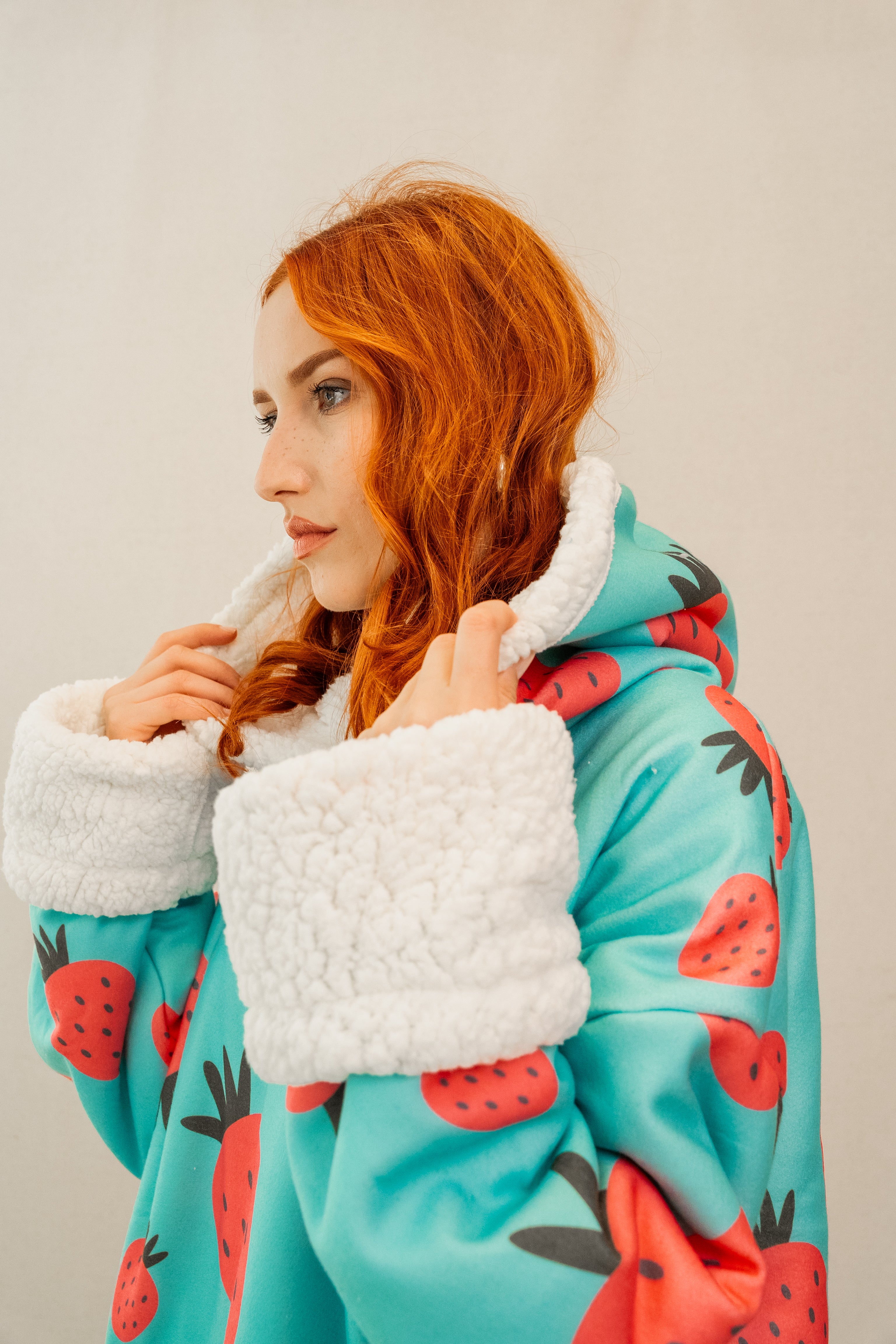 İçi pamuk, dışı ultra yumuşak polar yapısıyla hem cilde dosttur hem de üstün sıcaklık sağlar. Giyilebilir battaniye + polar hoodie konforunu bir araya getirir.