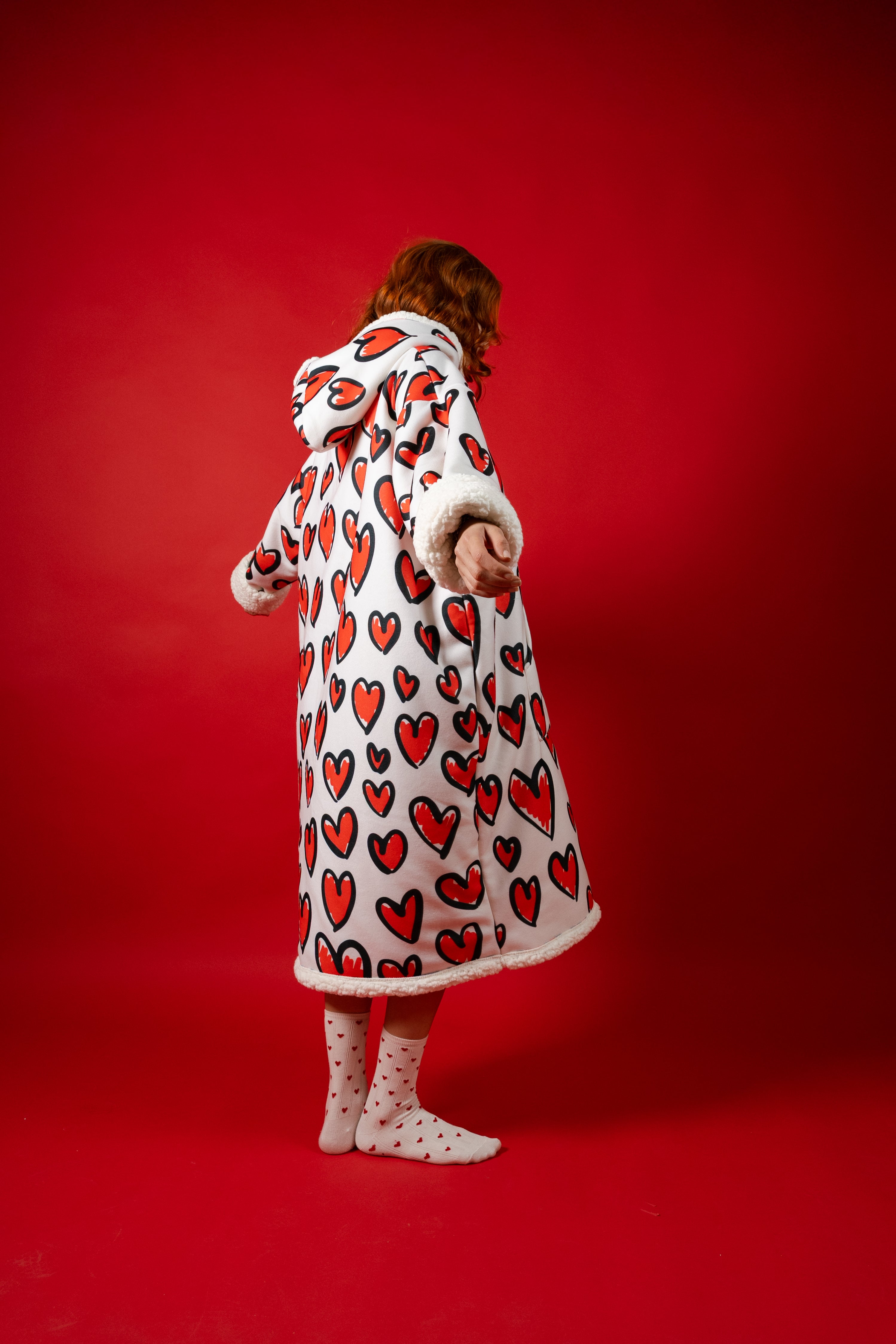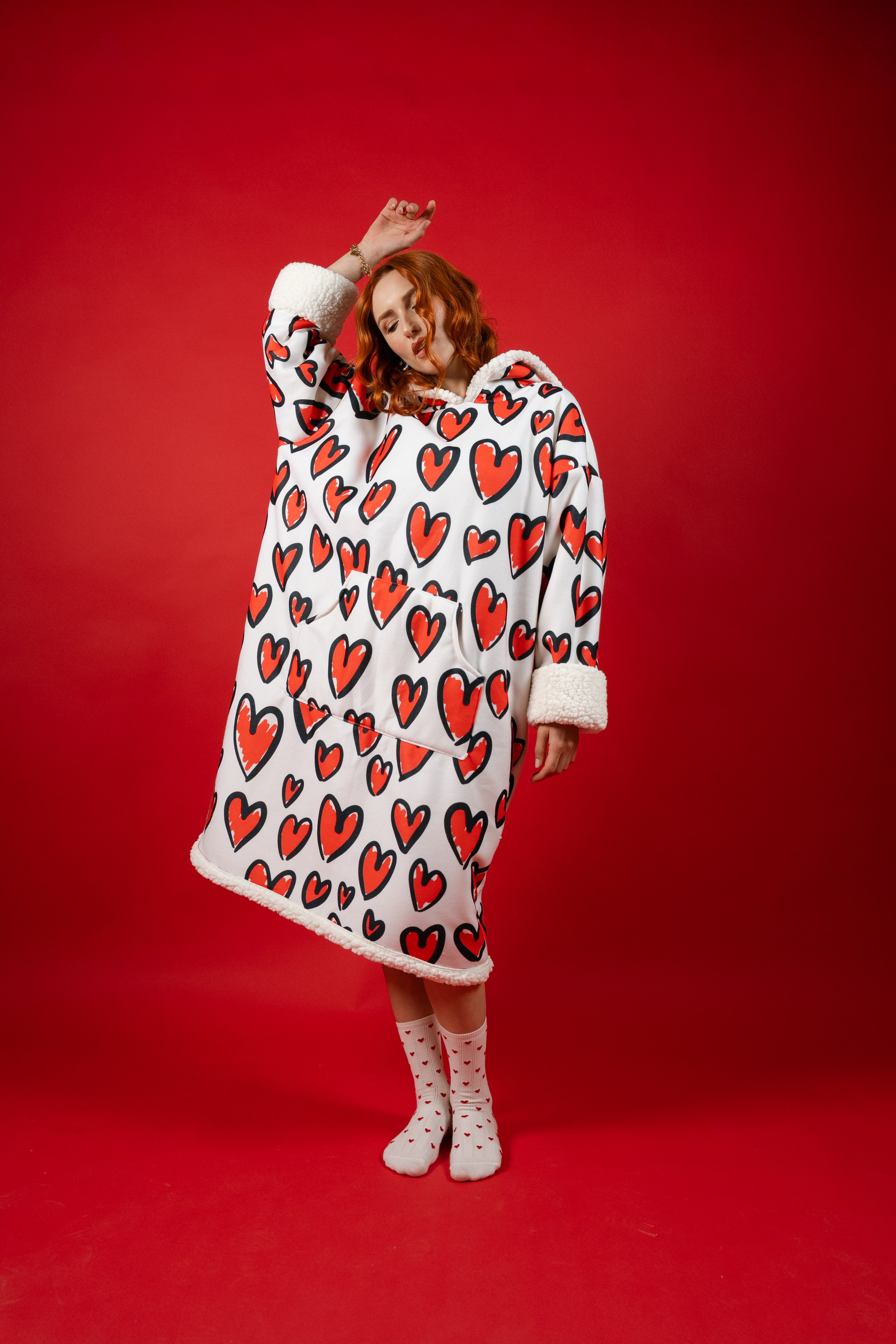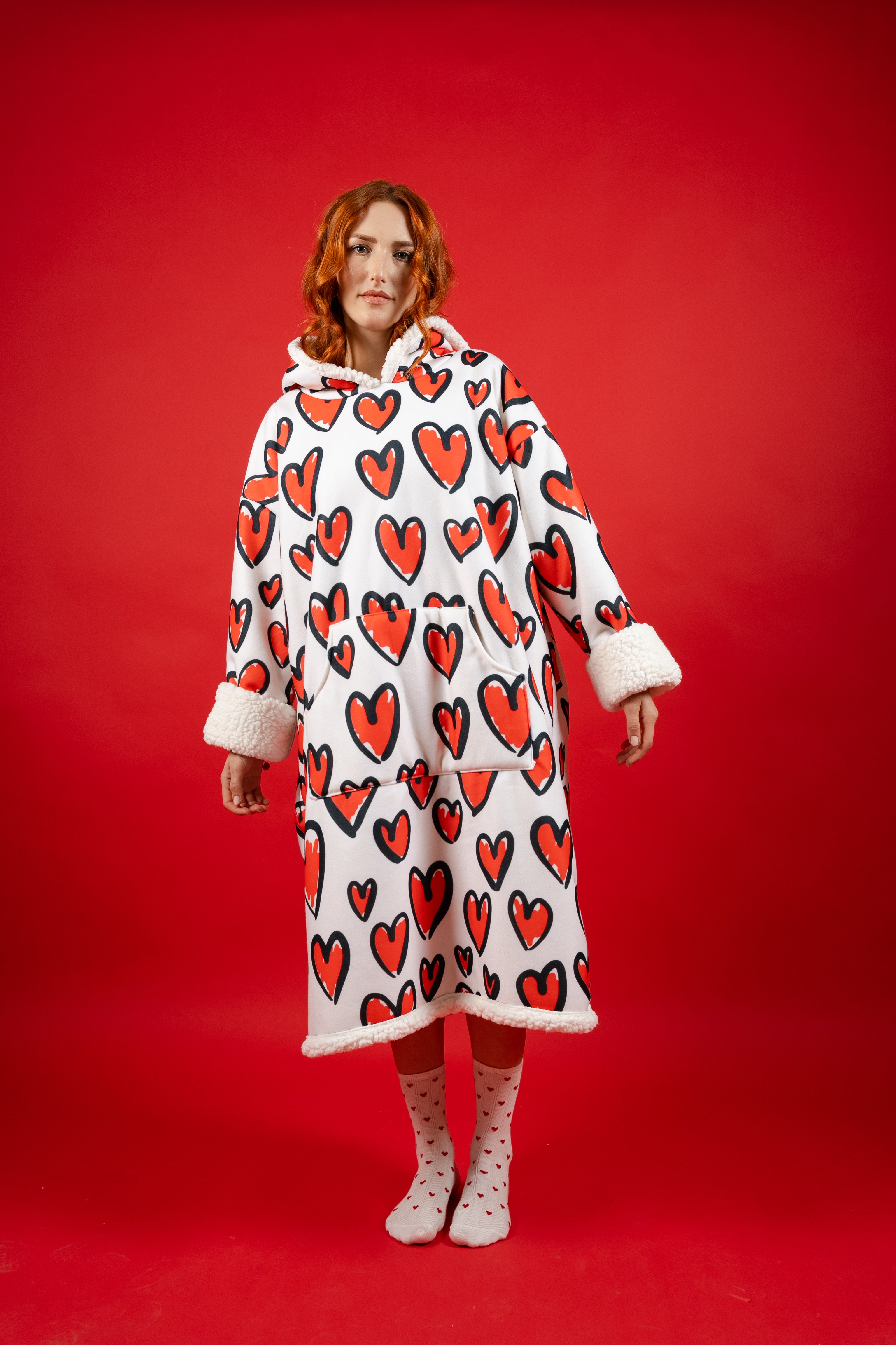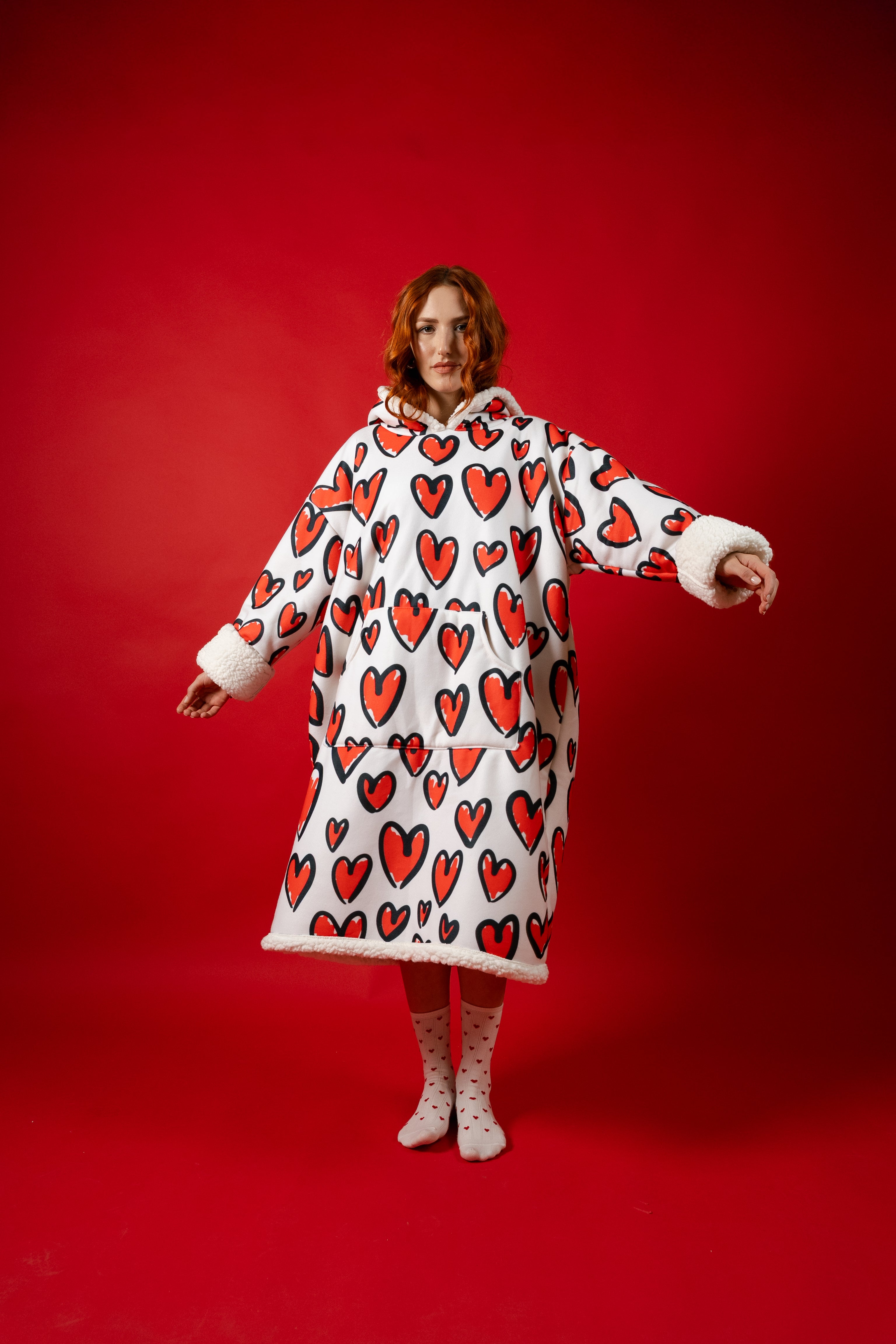Ponji Kapüşonlu Battaniye - Karalama Kalpler