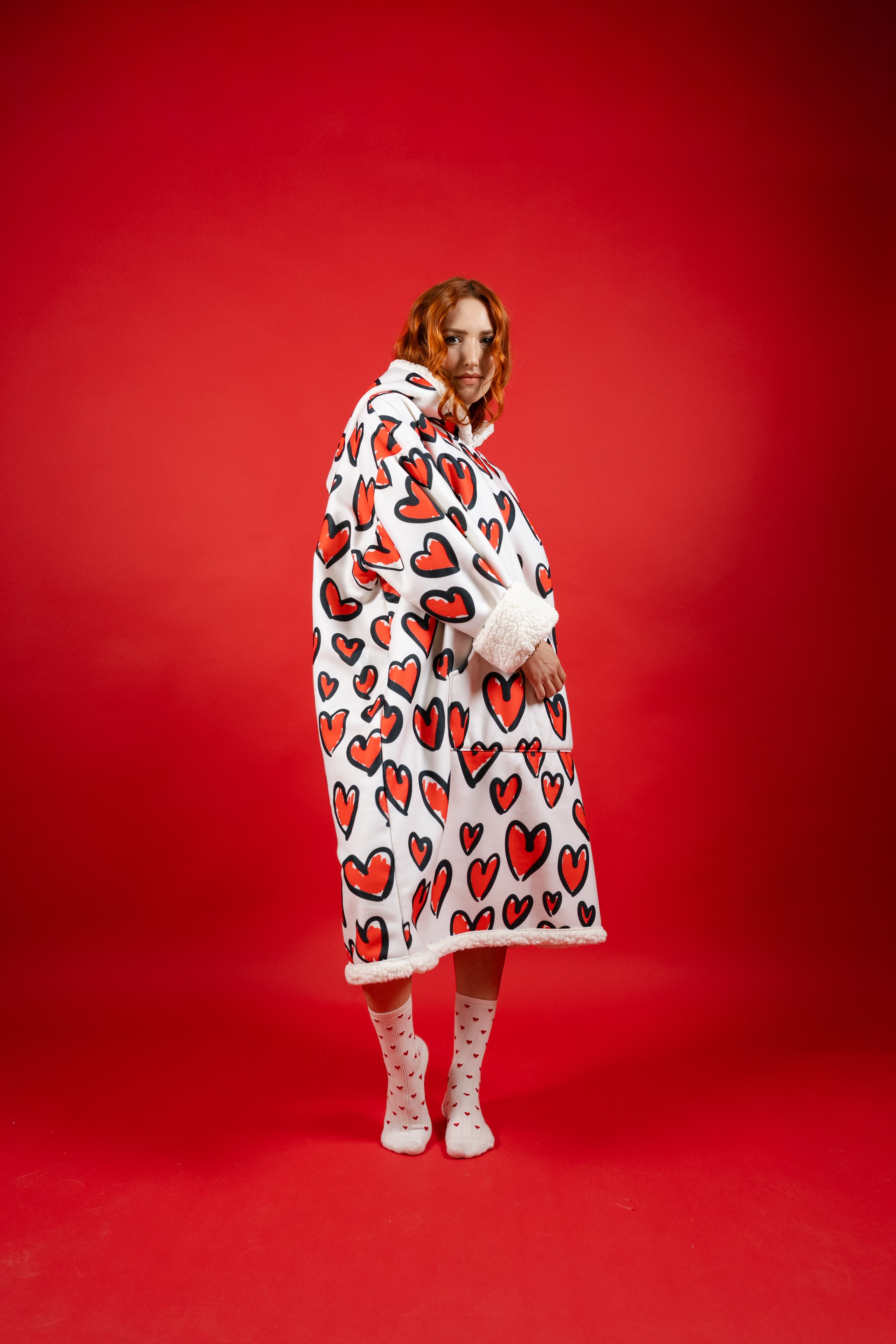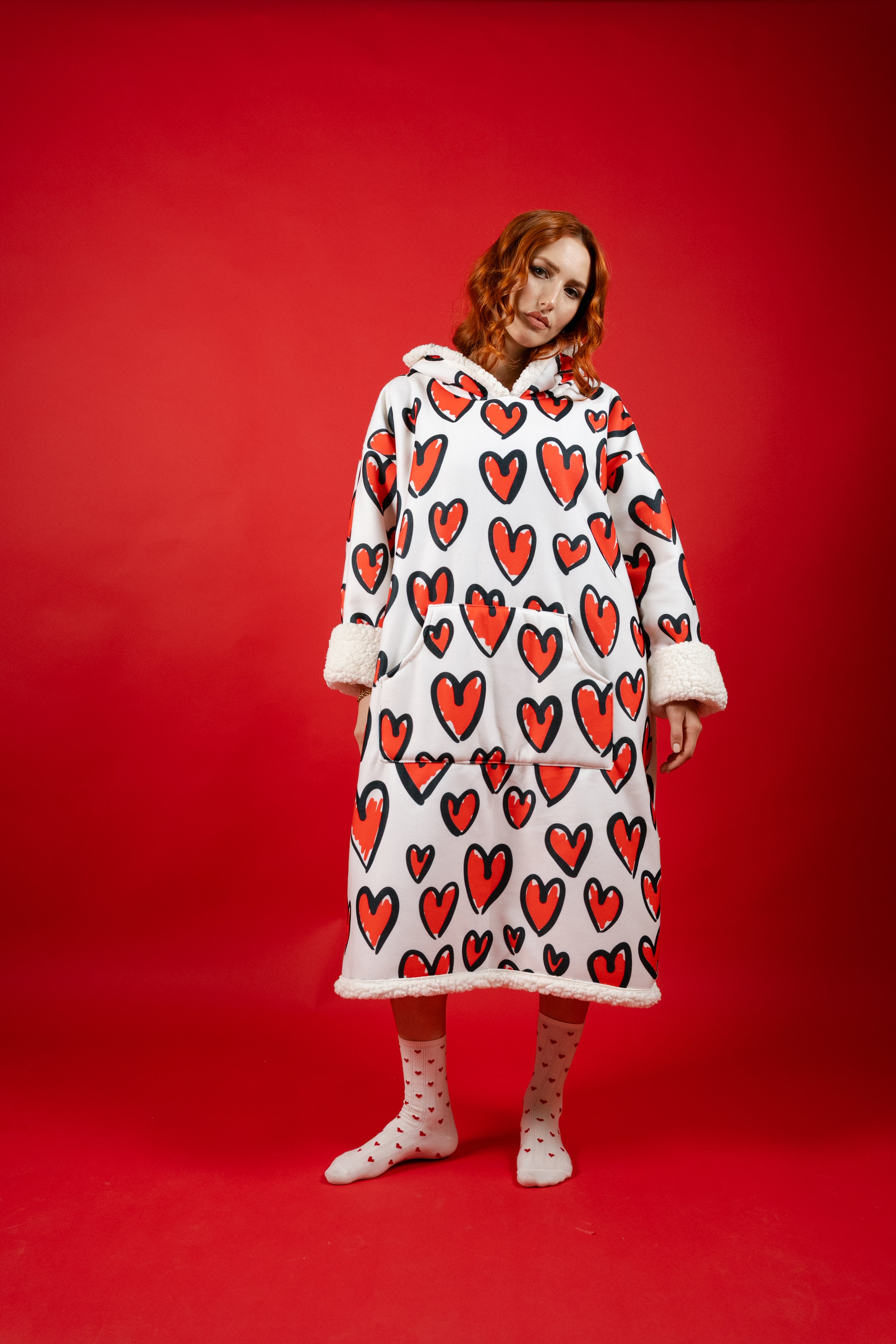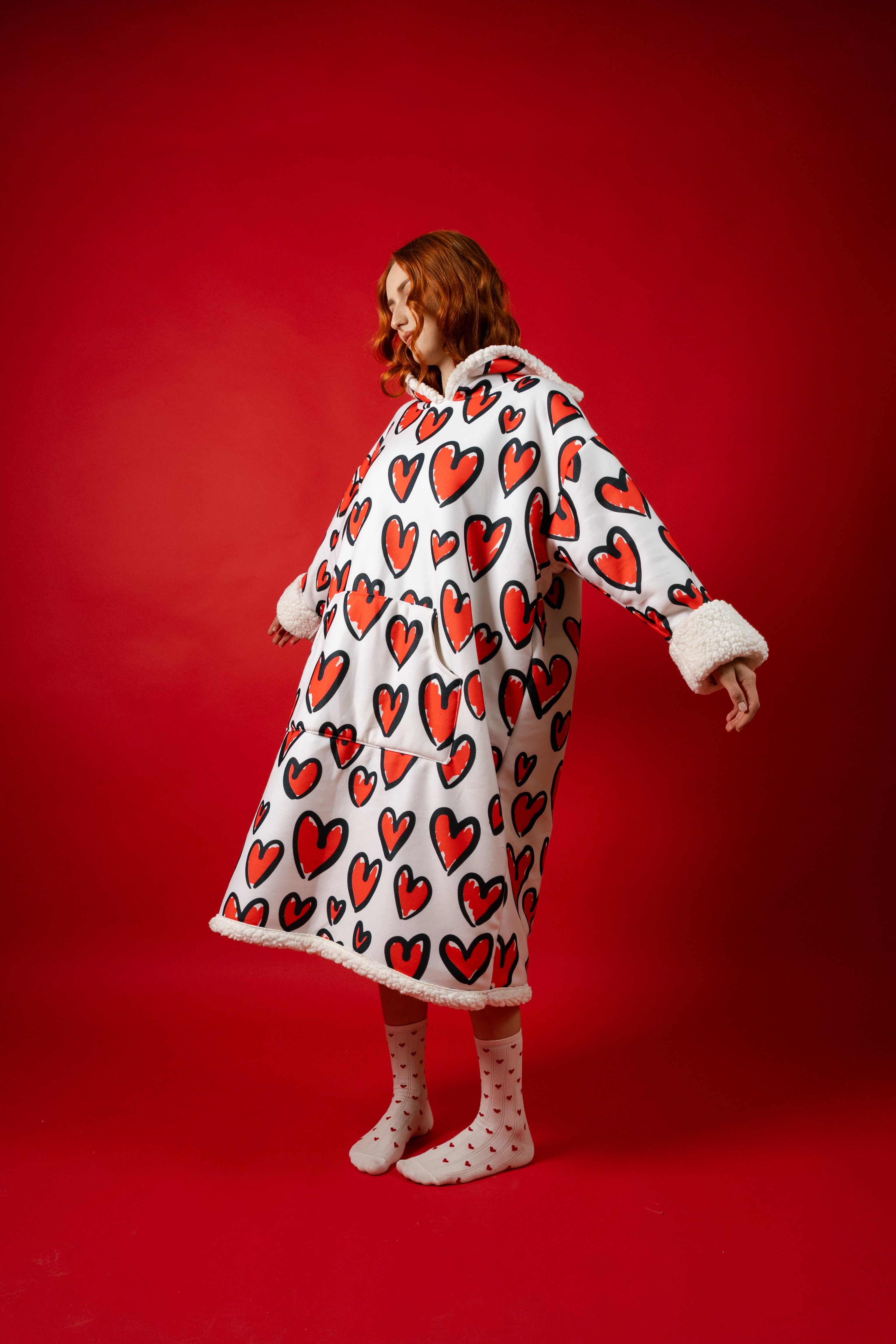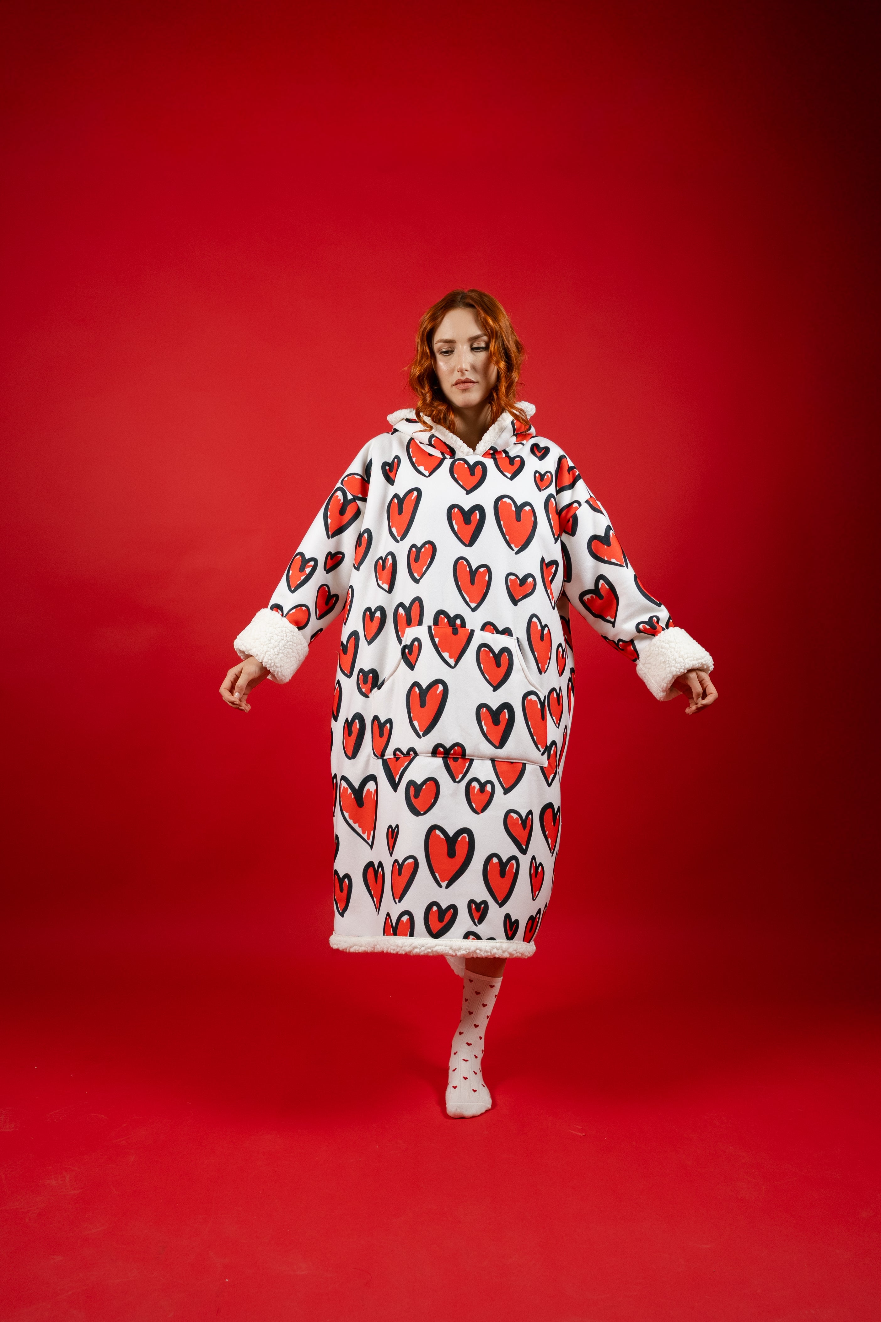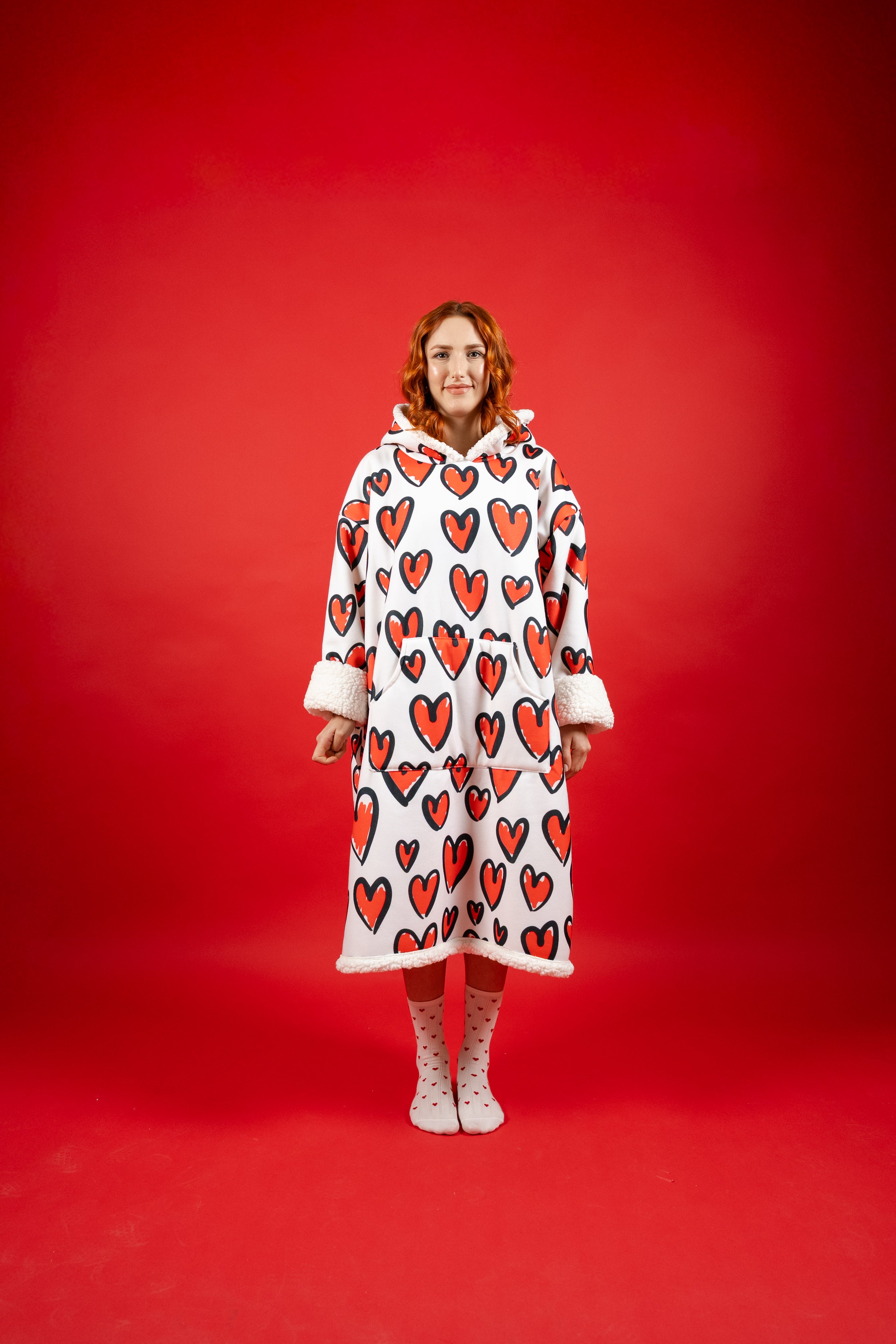 Ponji Kapüşonlu Battaniye - Karalama Kalpler
