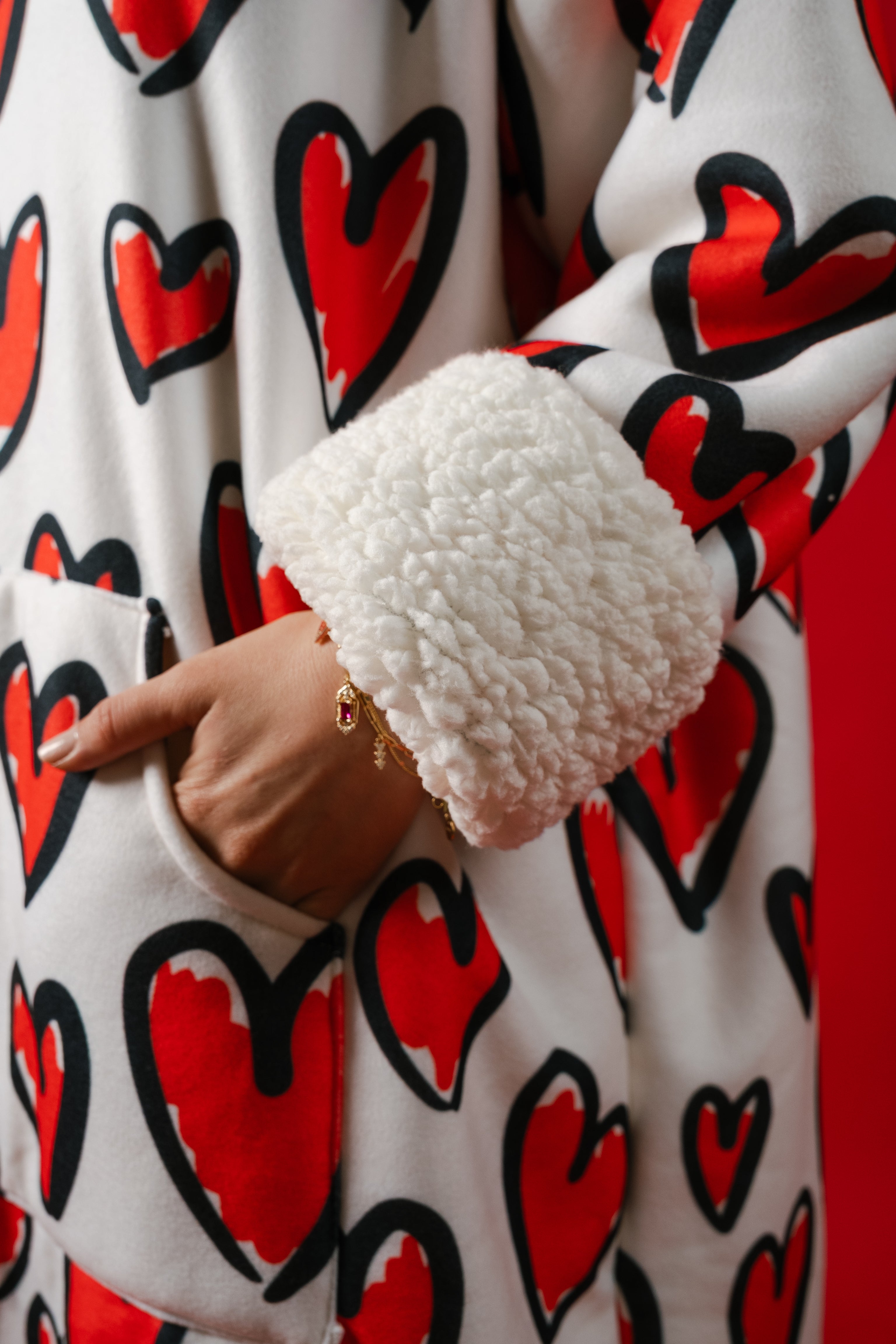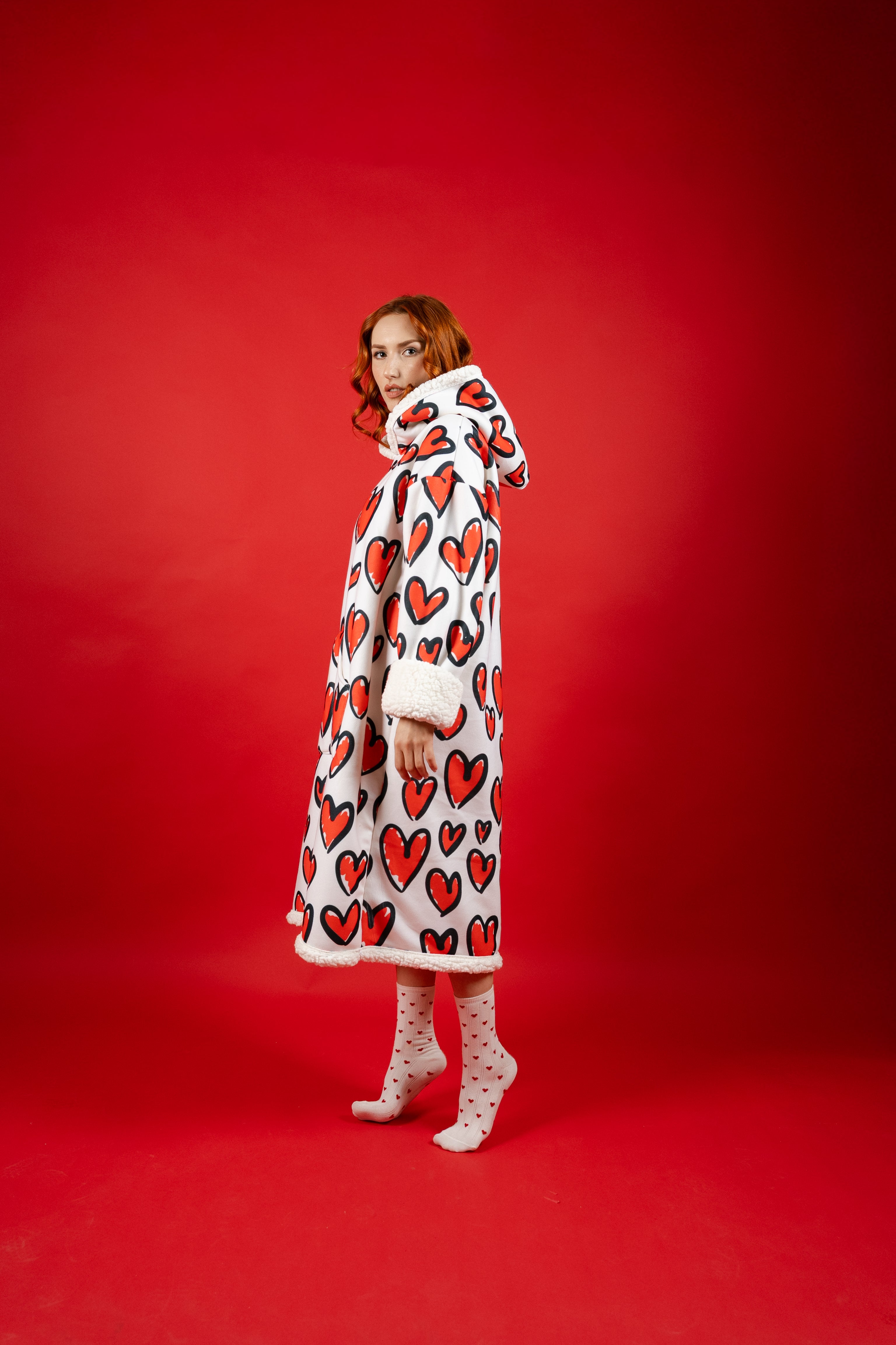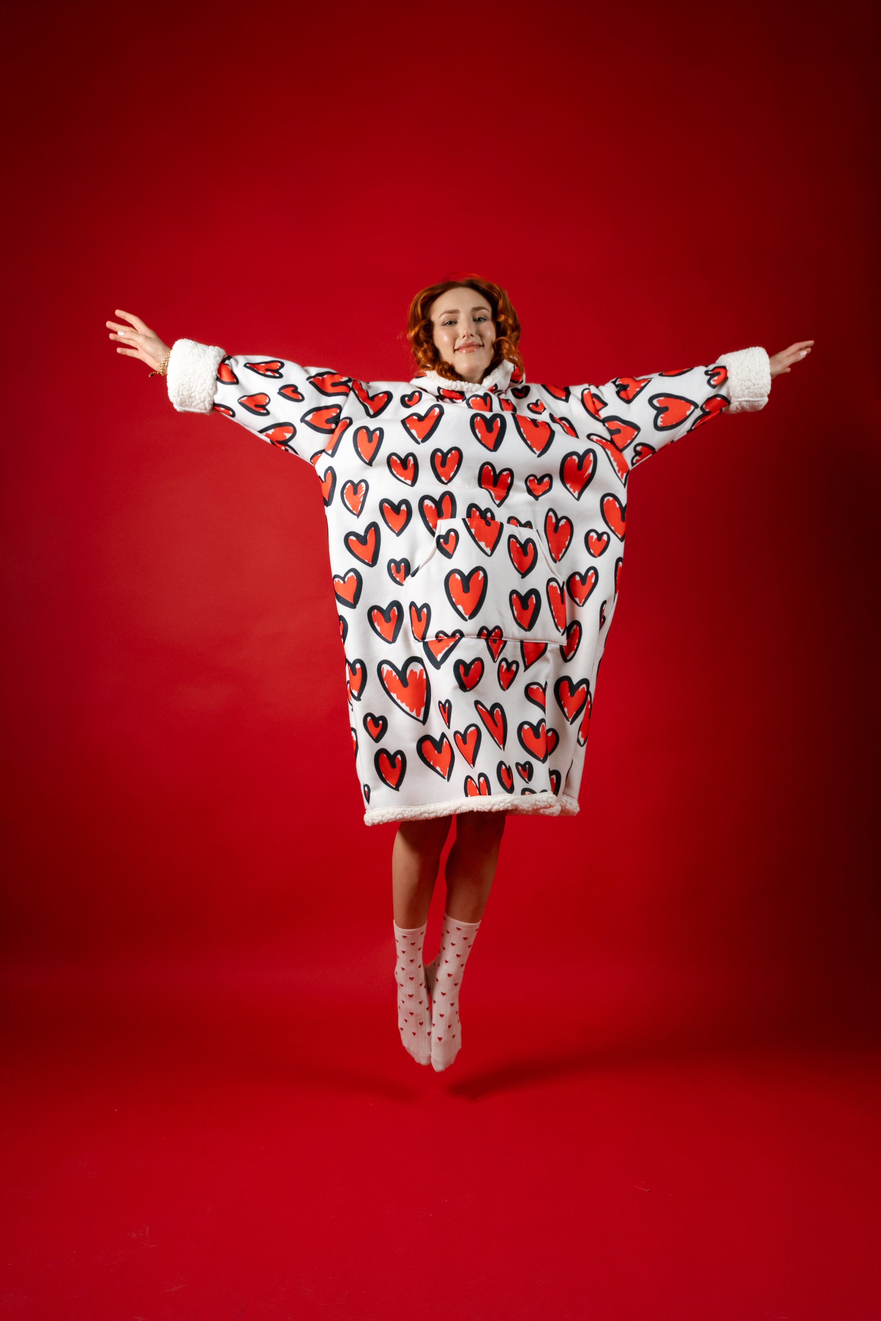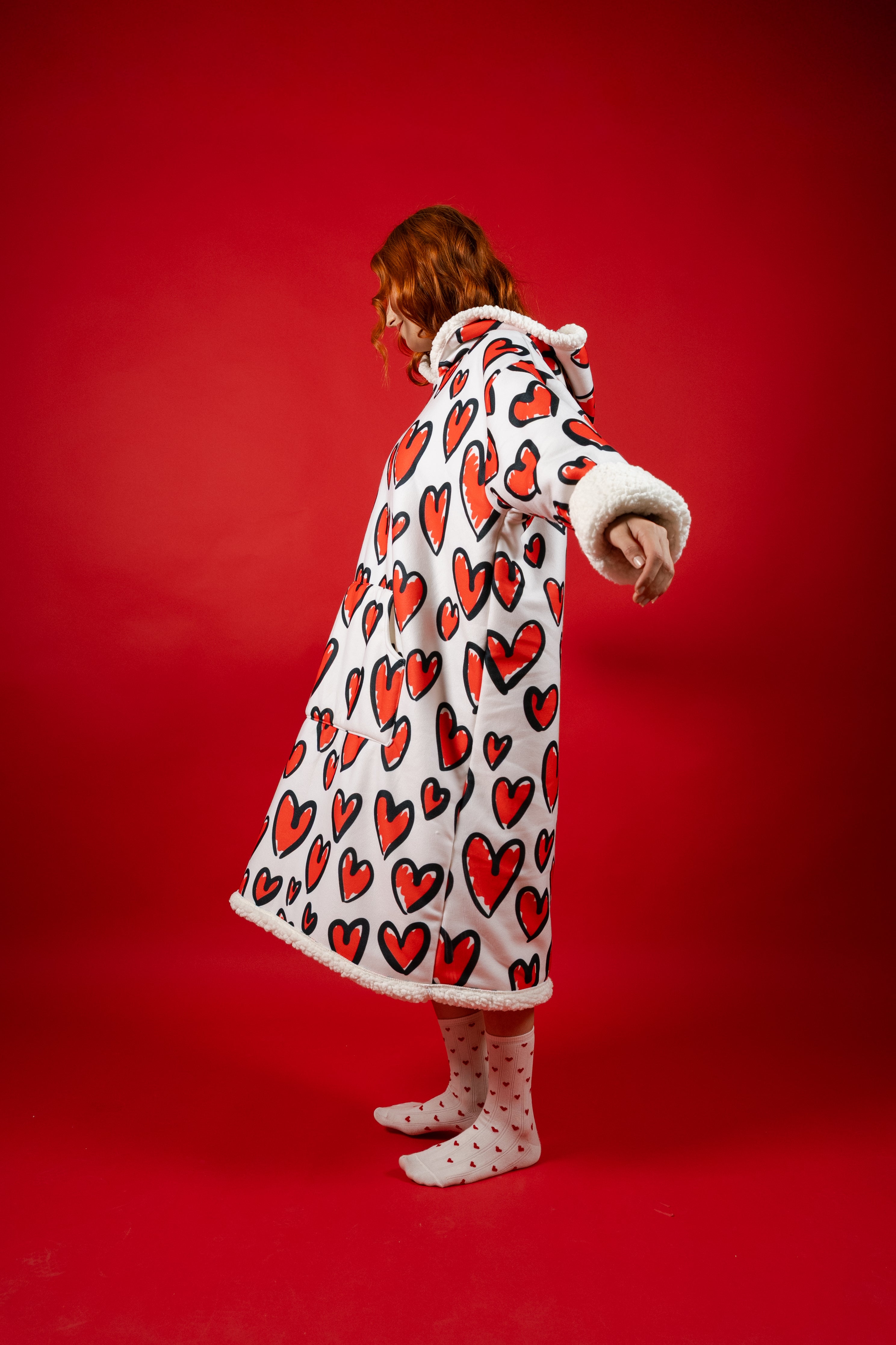 Ponji Kapüşonlu Battaniye - Karalama Kalpler