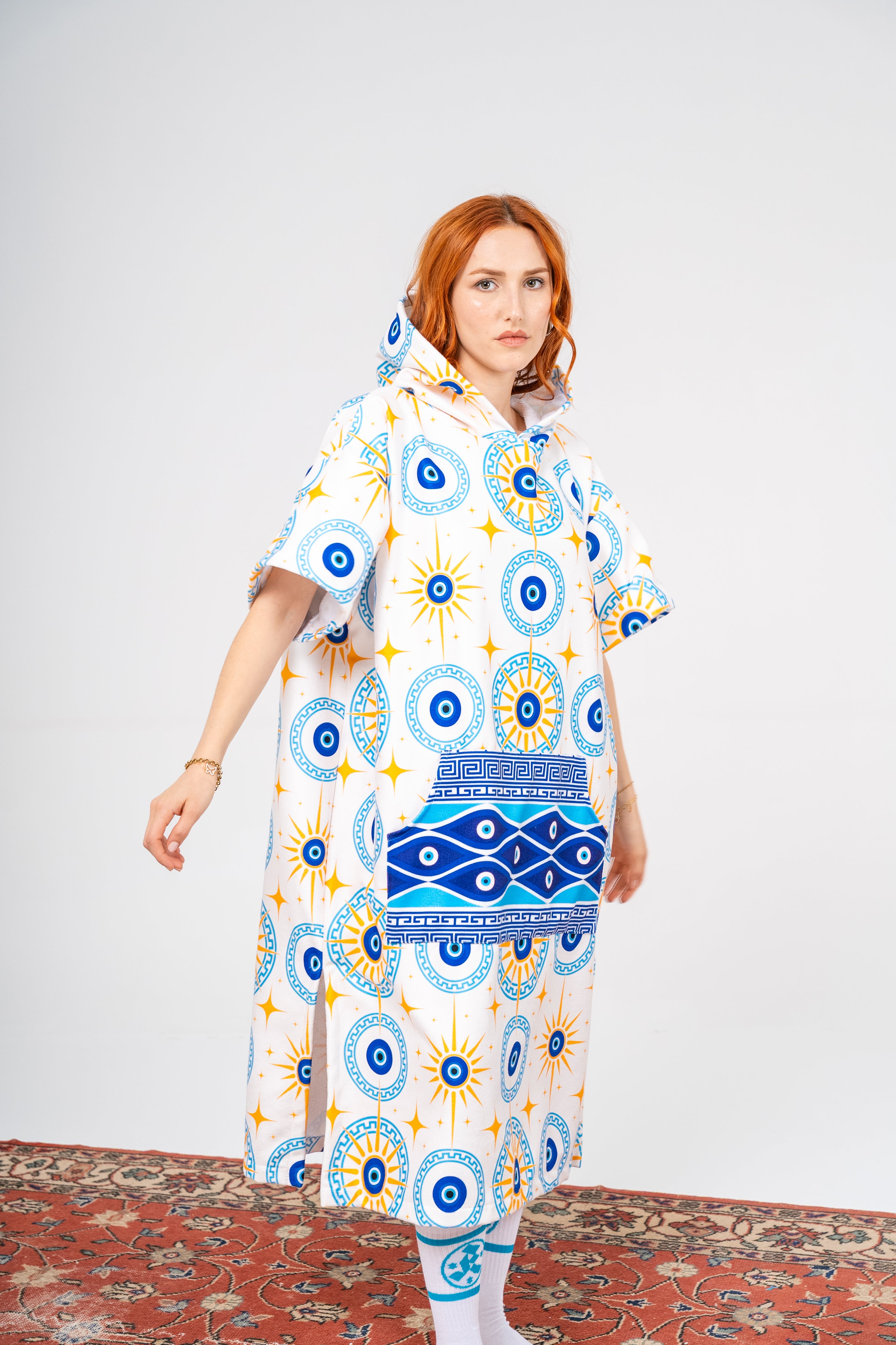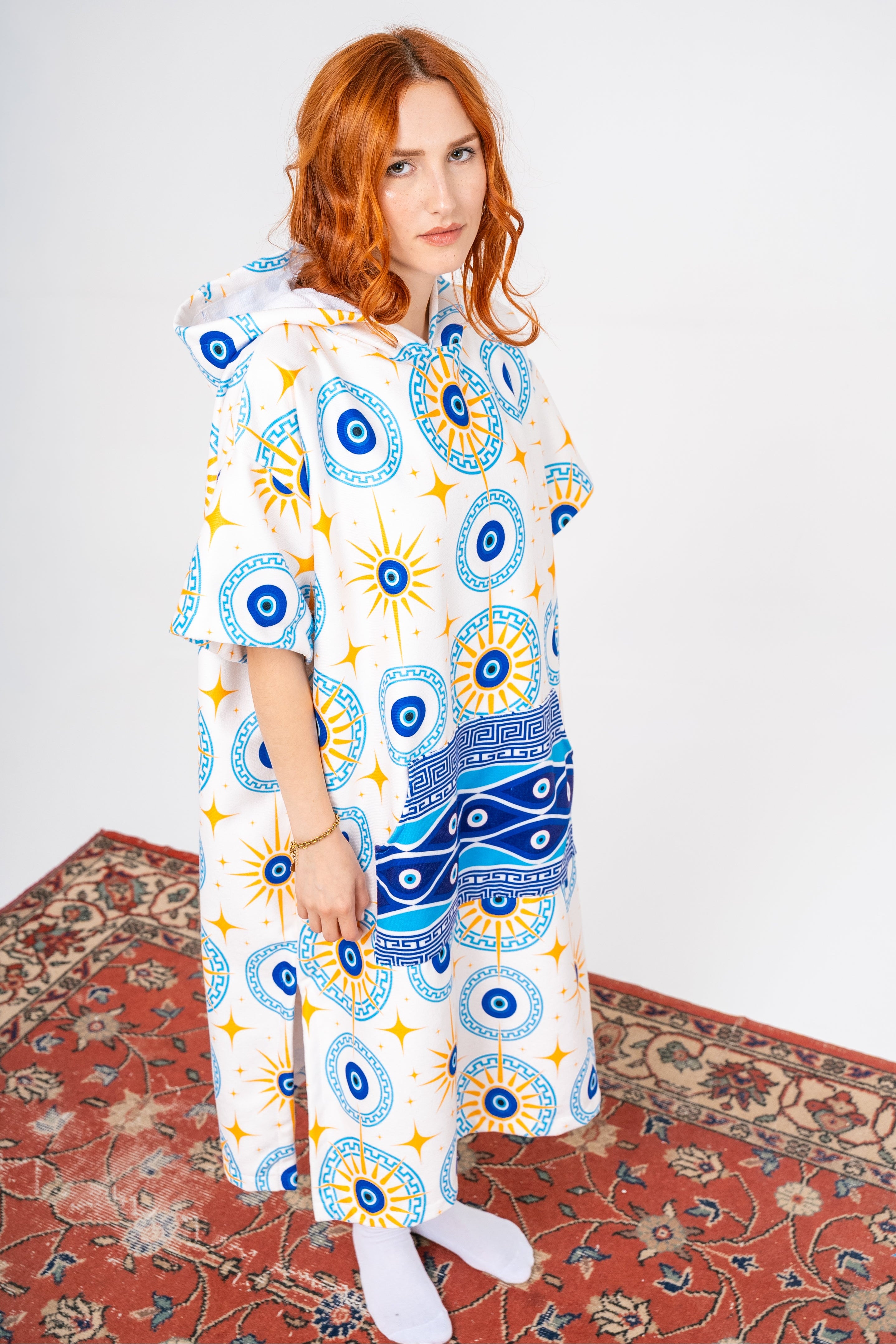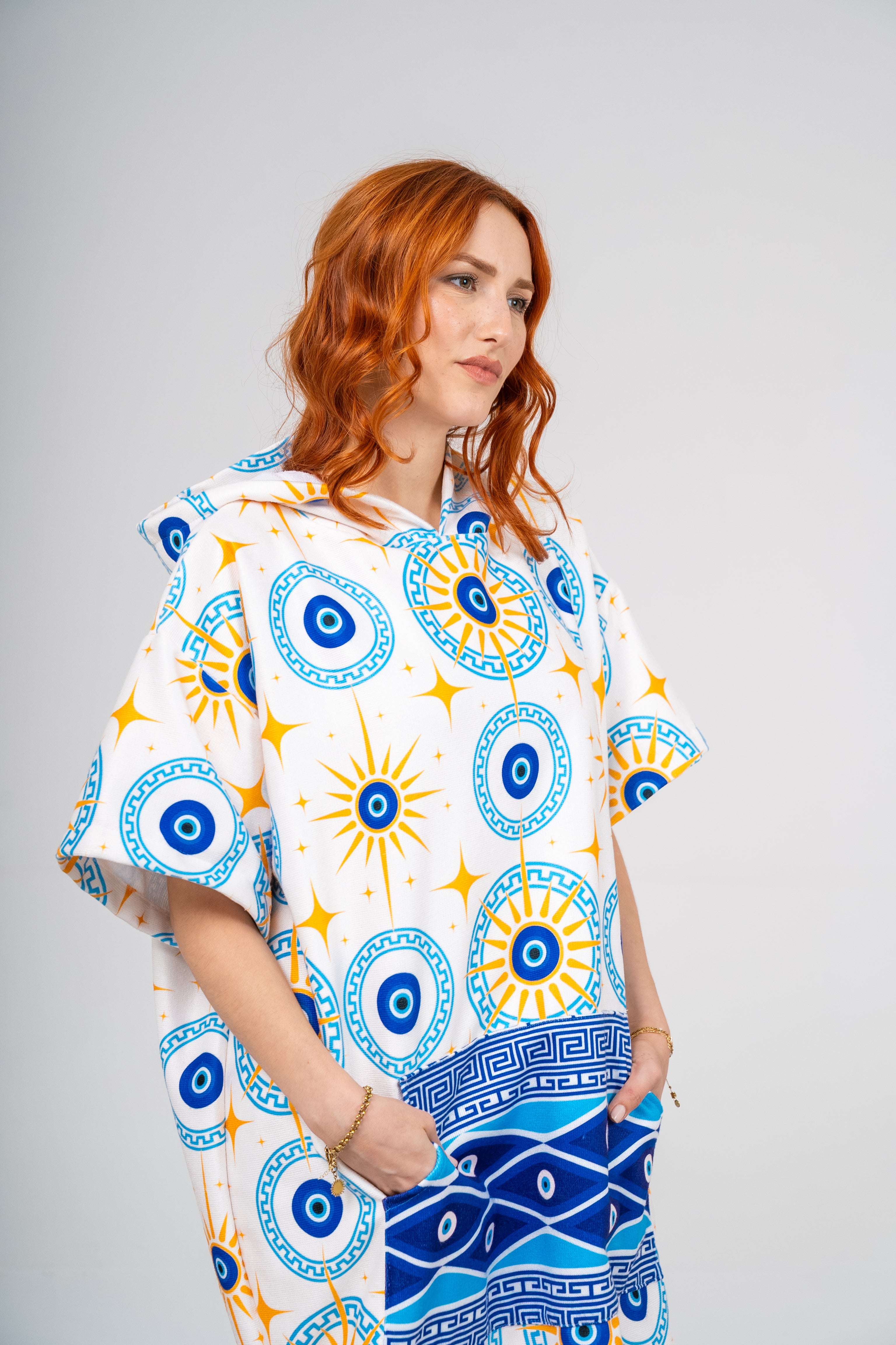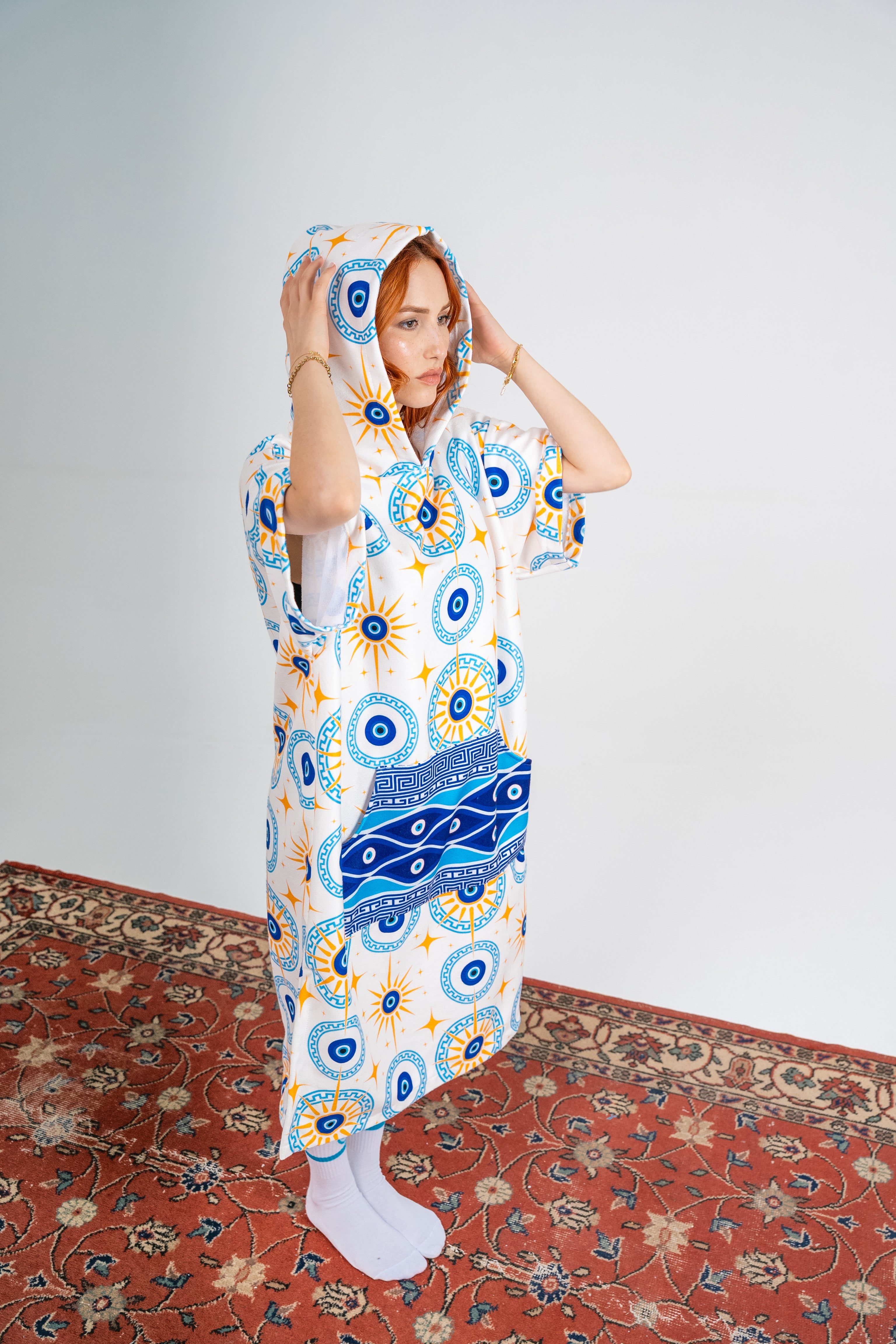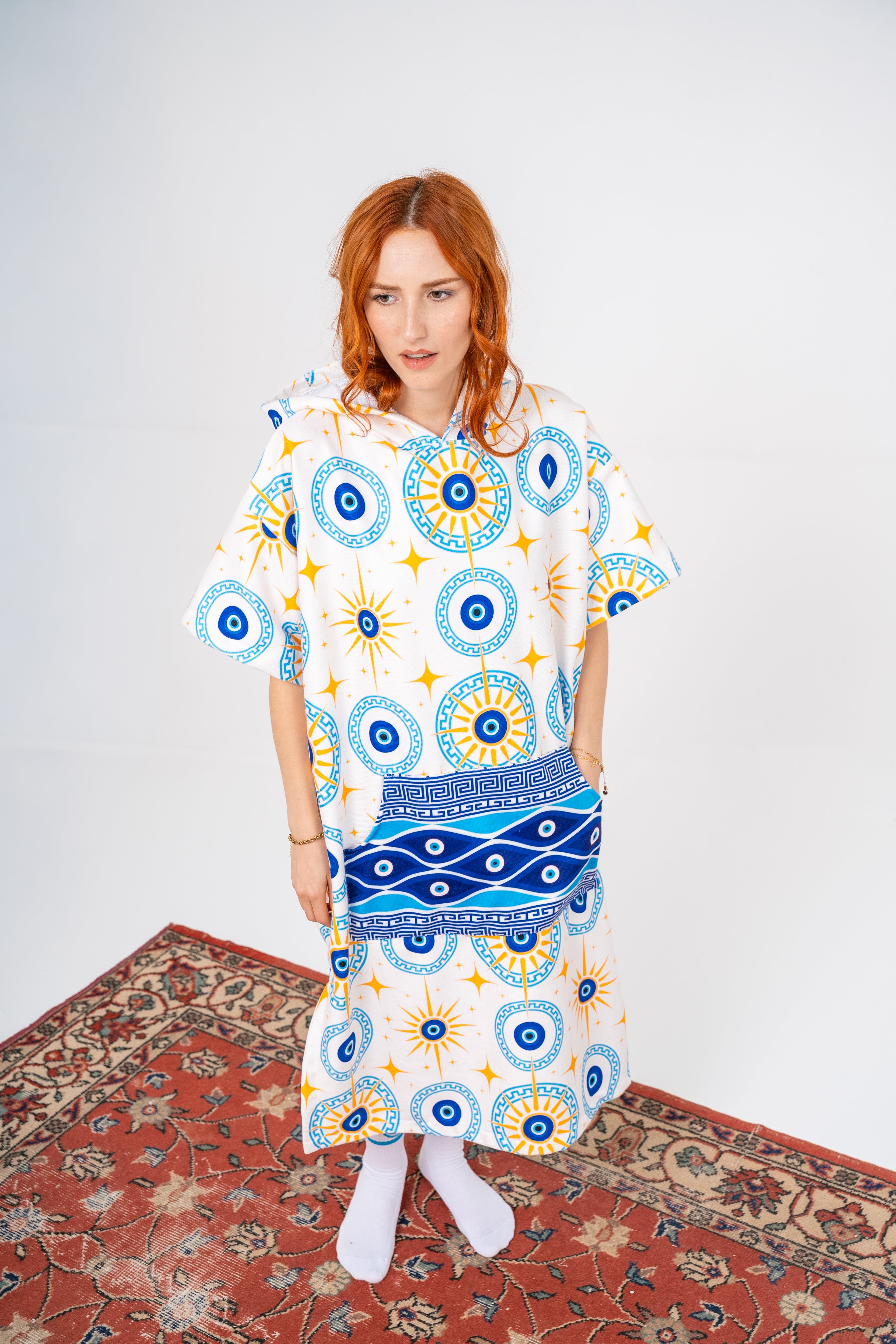 Geniş kesimi sayesinde plajda özgürce hareket etmenizi sağlar. Üst değiştirmeyi kolaylaştırır.