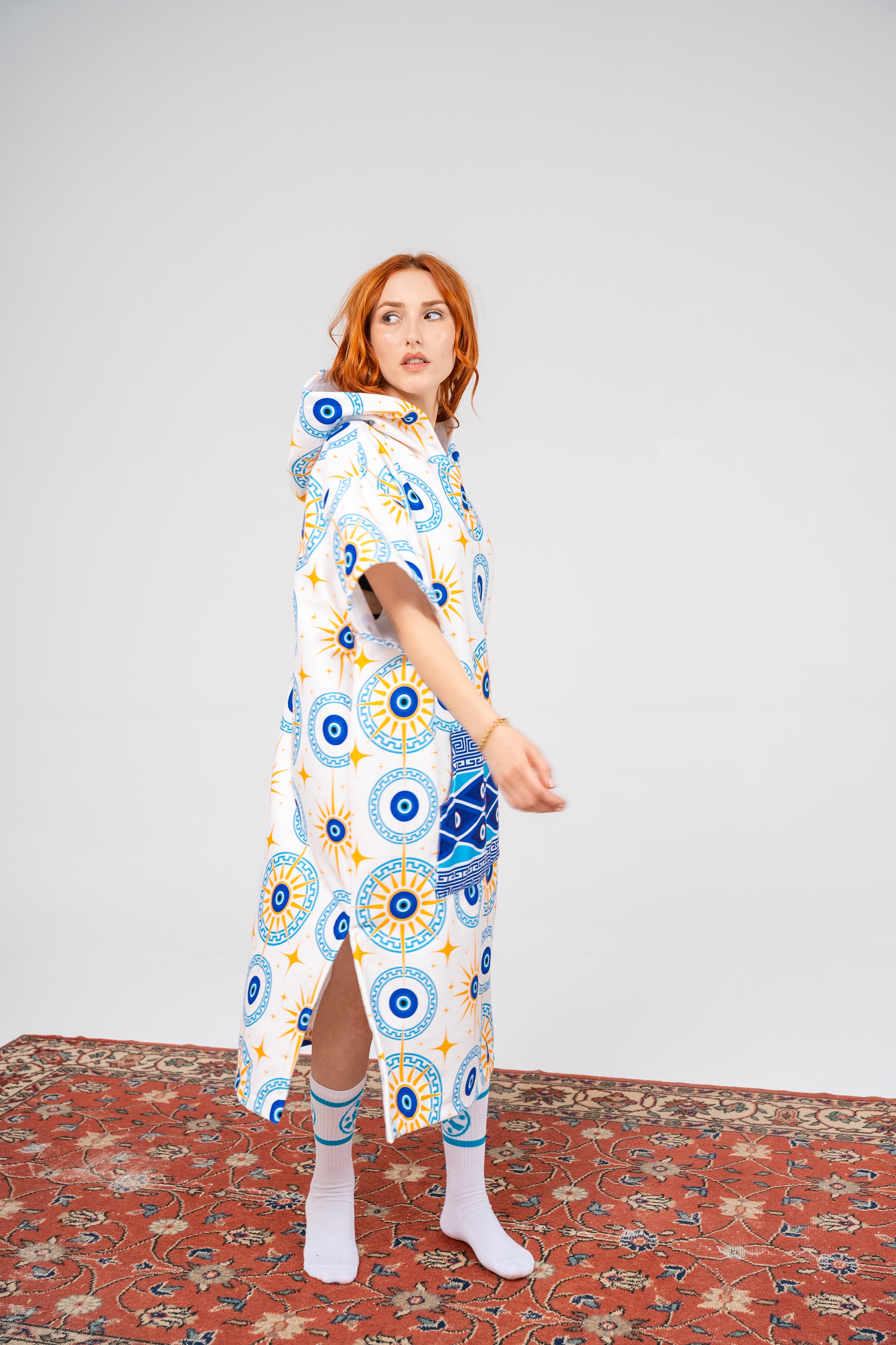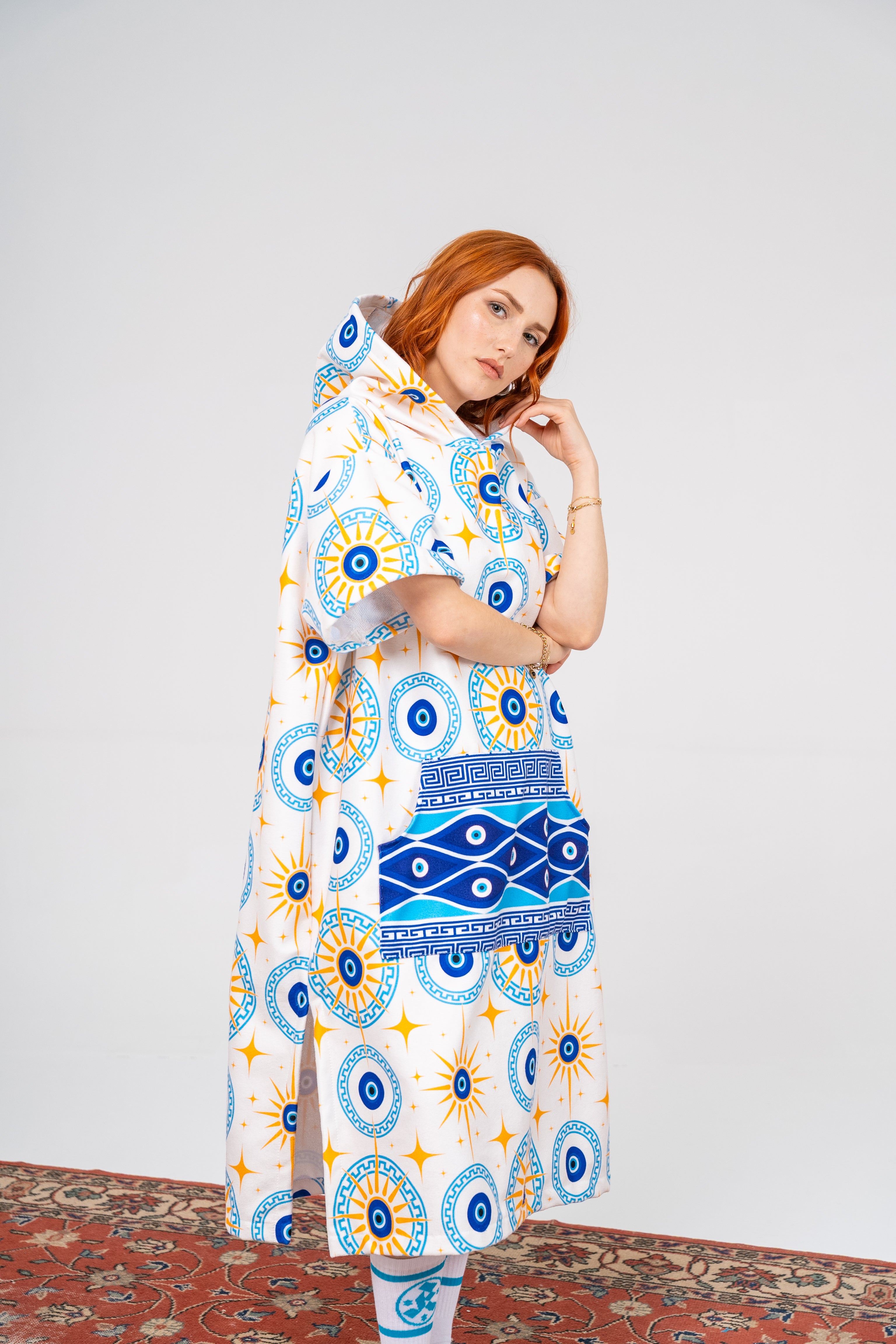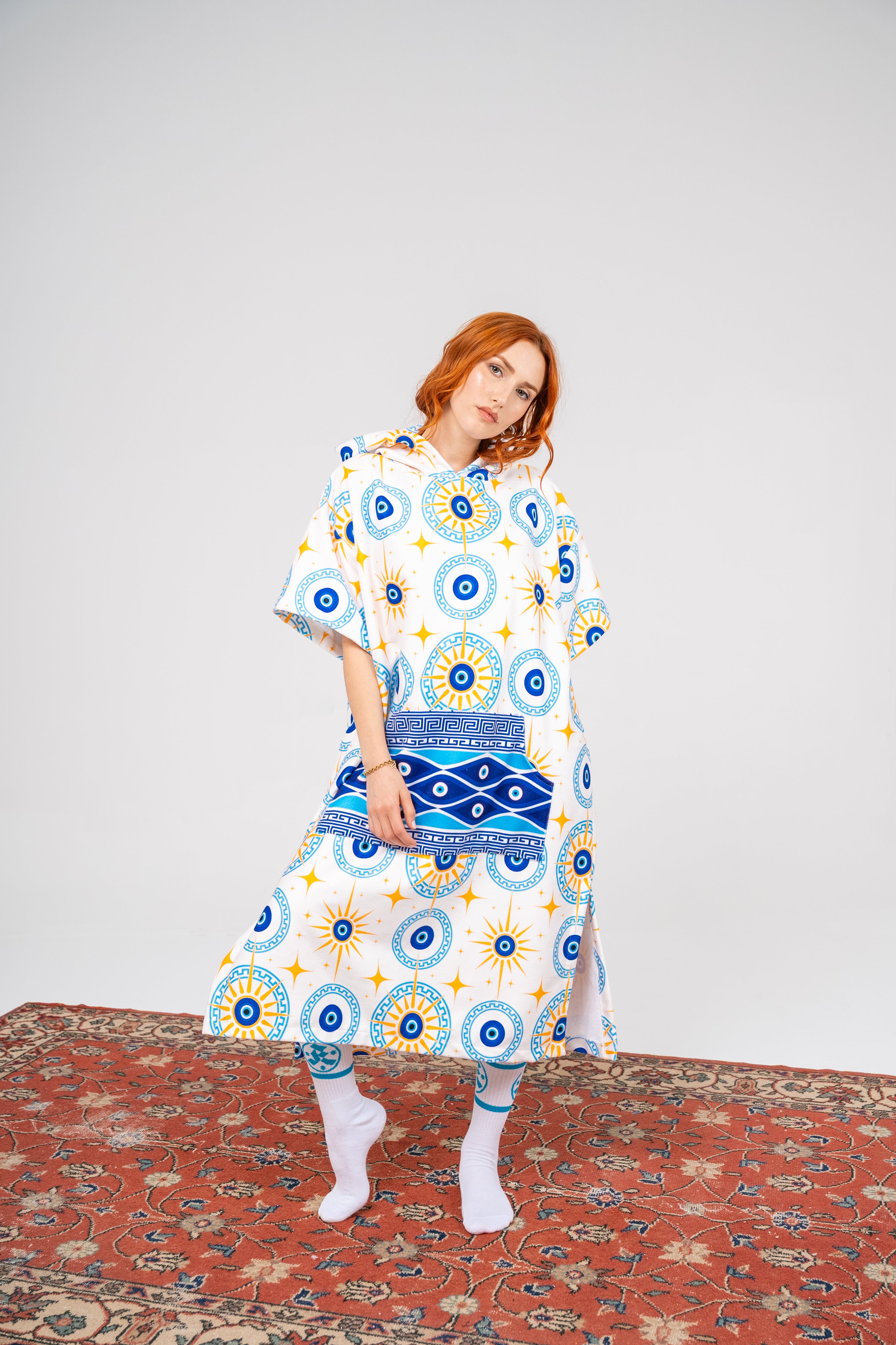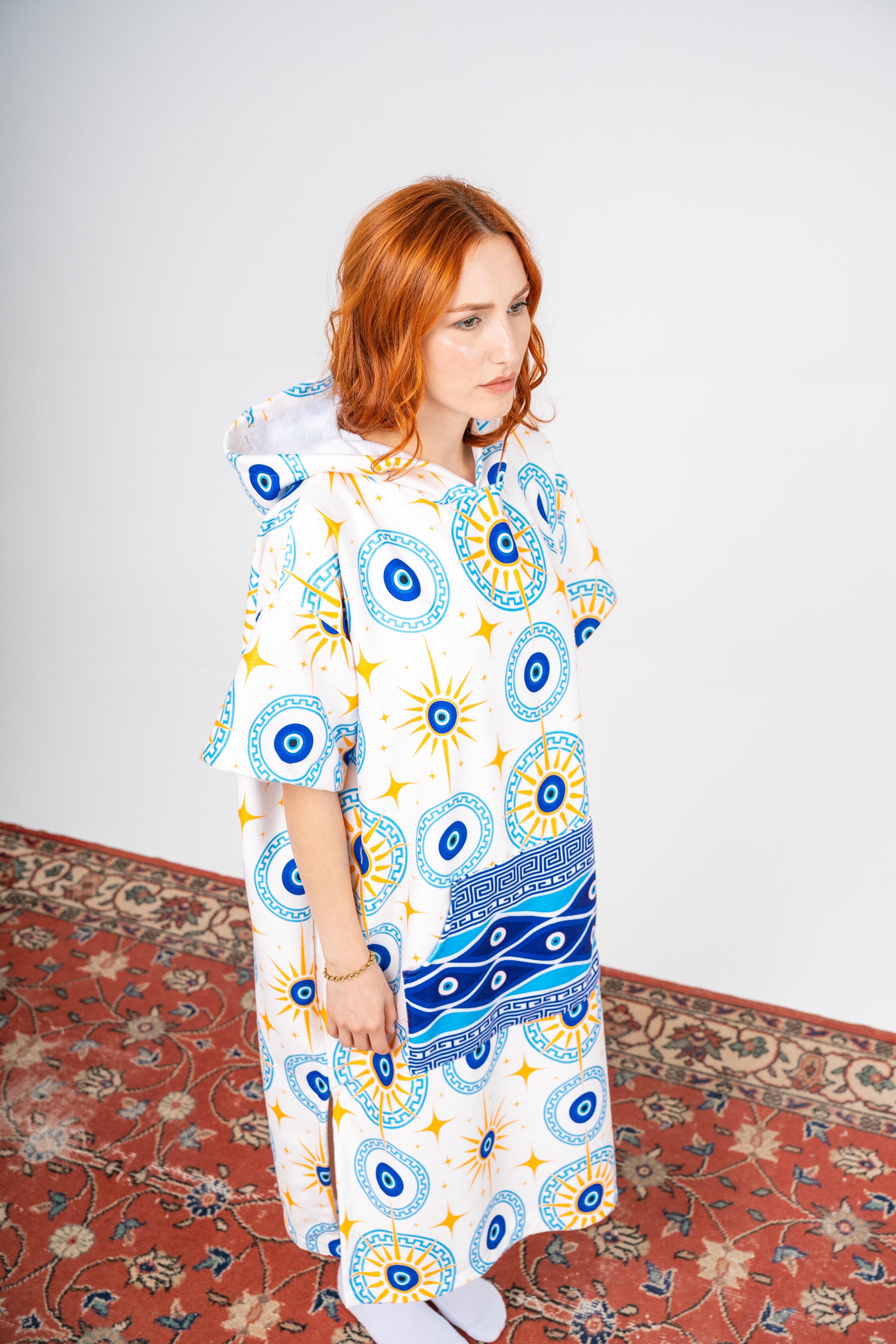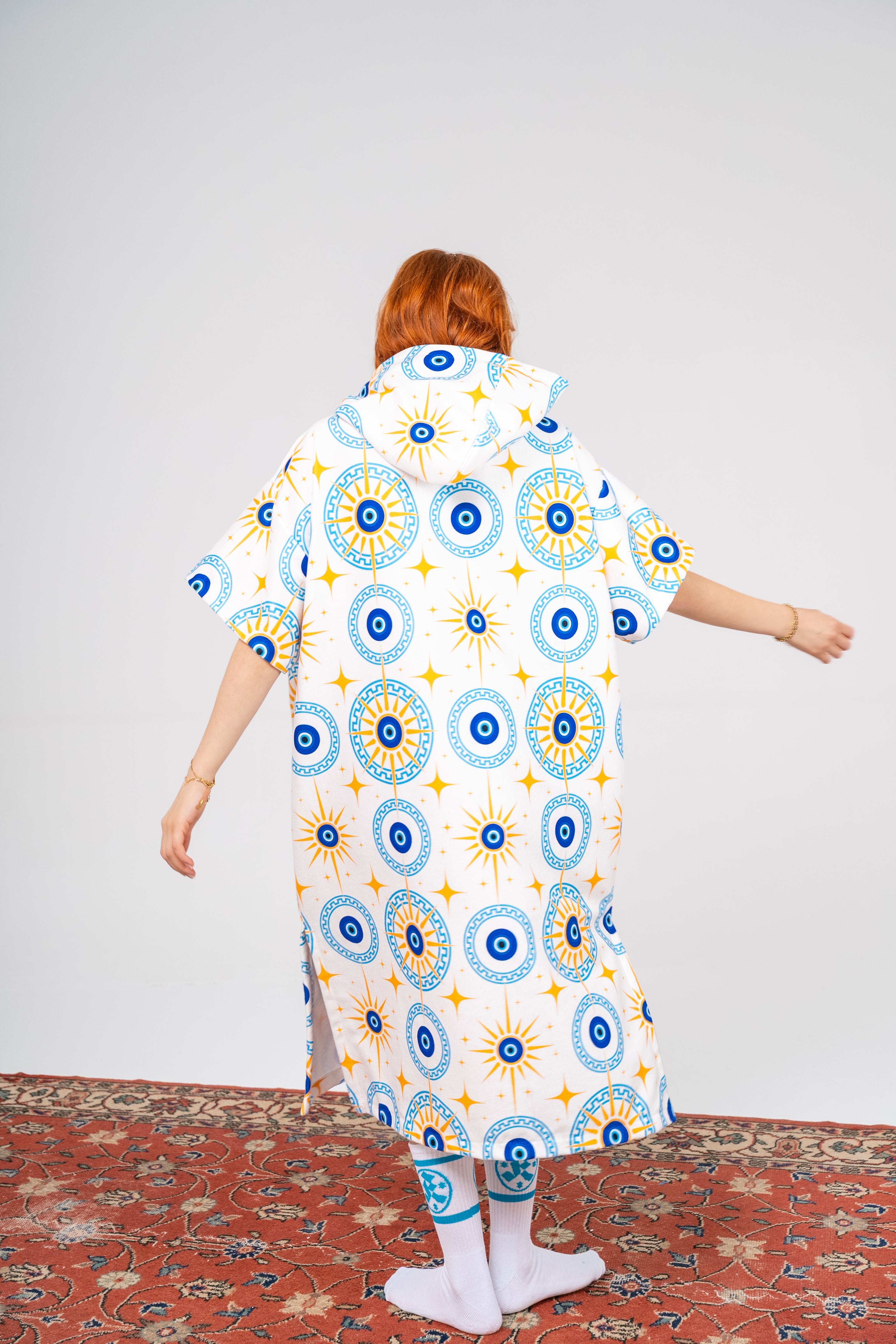 Geniş kesimi sayesinde plajda özgürce hareket etmenizi sağlar. Üst değiştirmeyi kolaylaştırır.