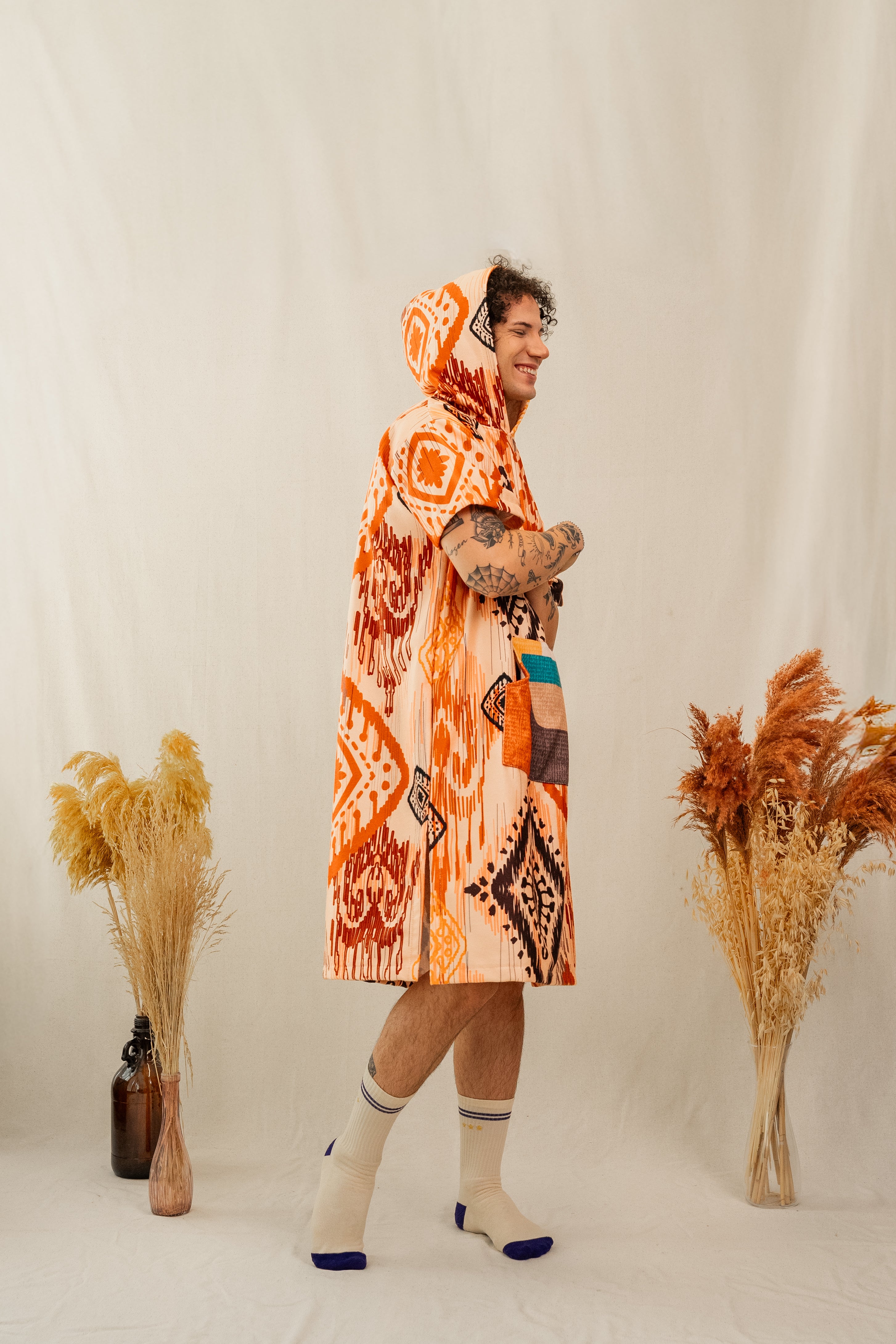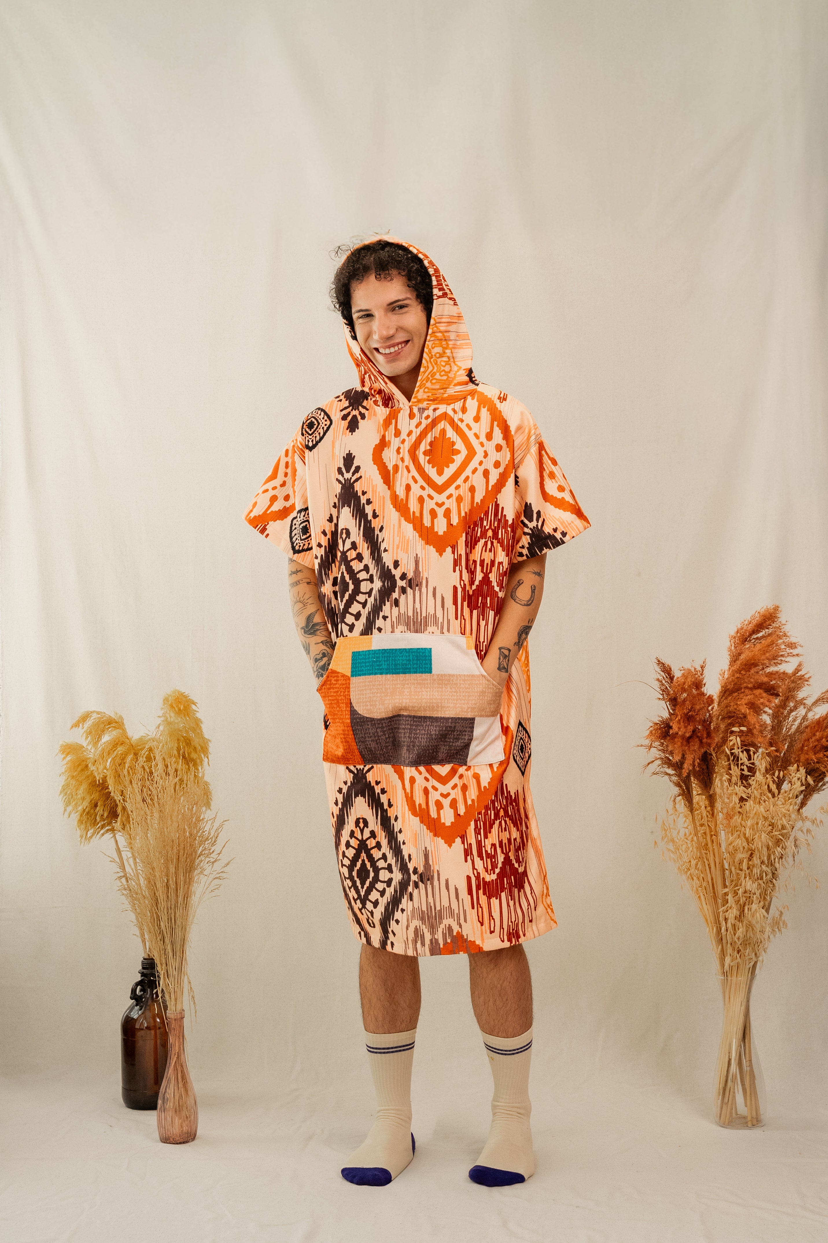 - Ponji panço ve giyilebilir battaniyeler, yüksek kaliteli pamuk materyalden üretilmiştir. Pamuk dokusu cilde karşı son derece naziktir, yumuşak bir temas sağlar ve uzun süreli kullanımda dahi rahatsızlık vermez.